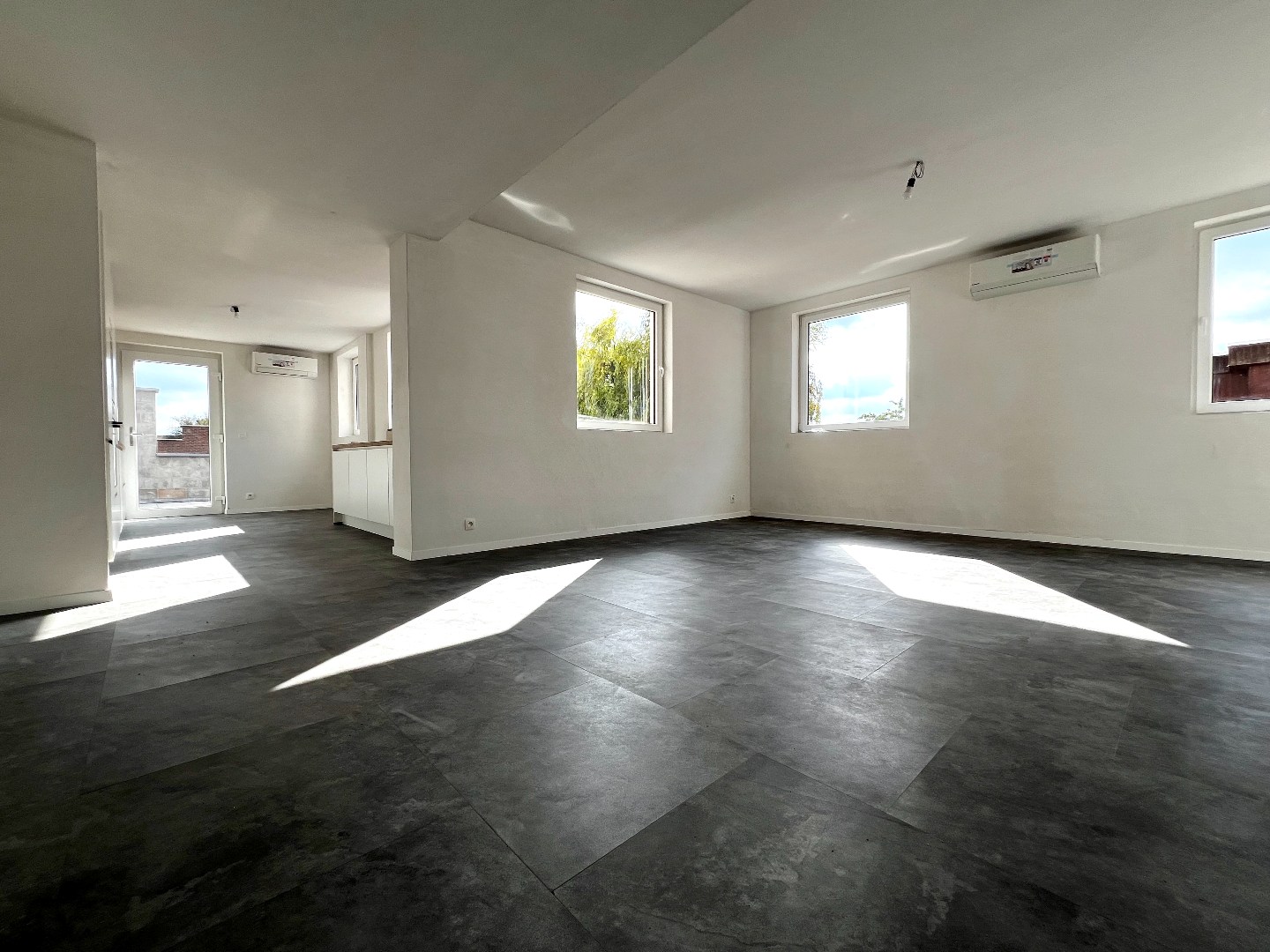 Een moderne leefruimte met open keuken vormt het hart van de woning – ideaal voor wie houdt van licht en ruimte. - EPC LABEL A