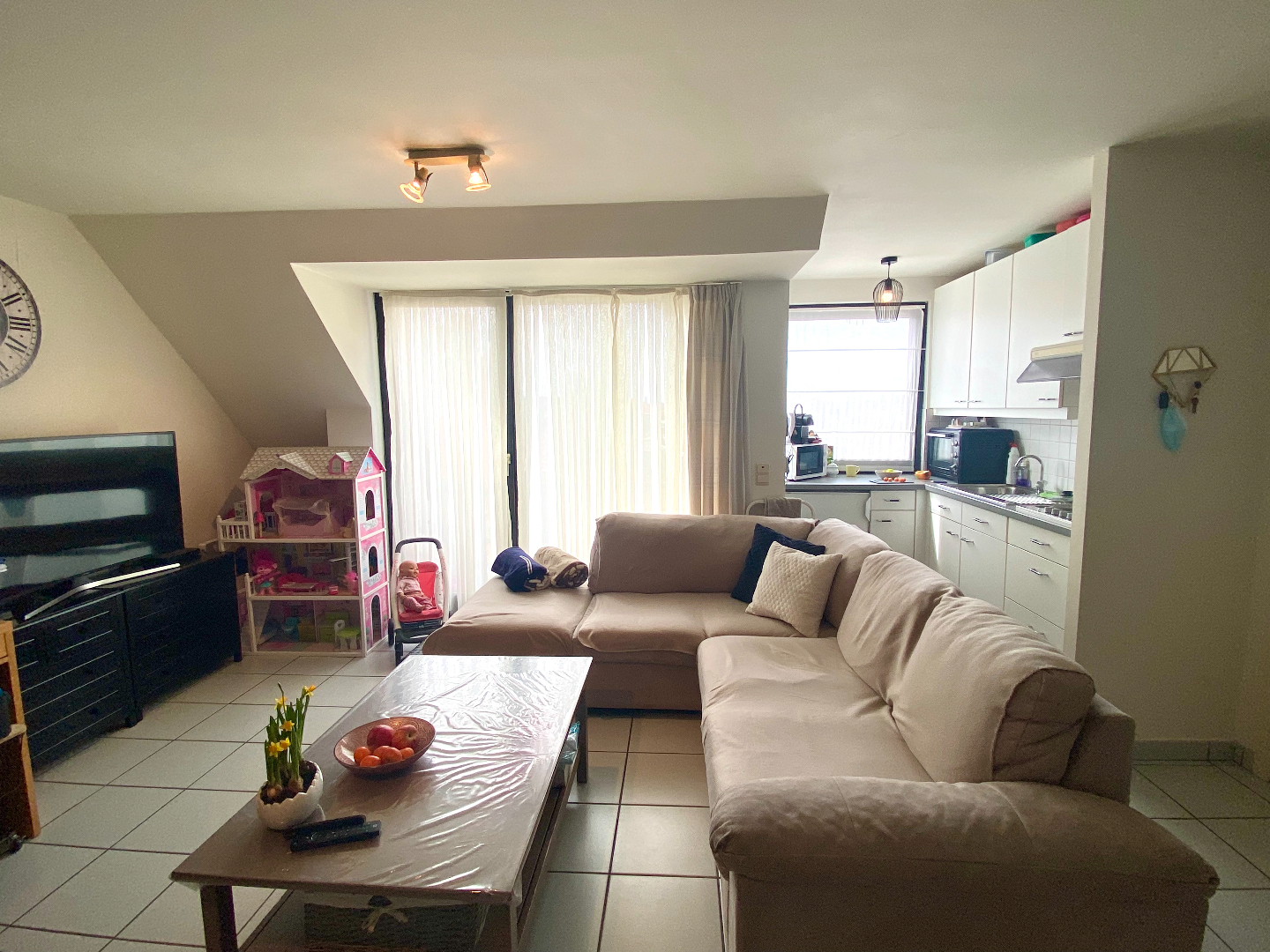 Het appartement bestaat uit een grote leefruimte met keukenhoek, apart toilet.