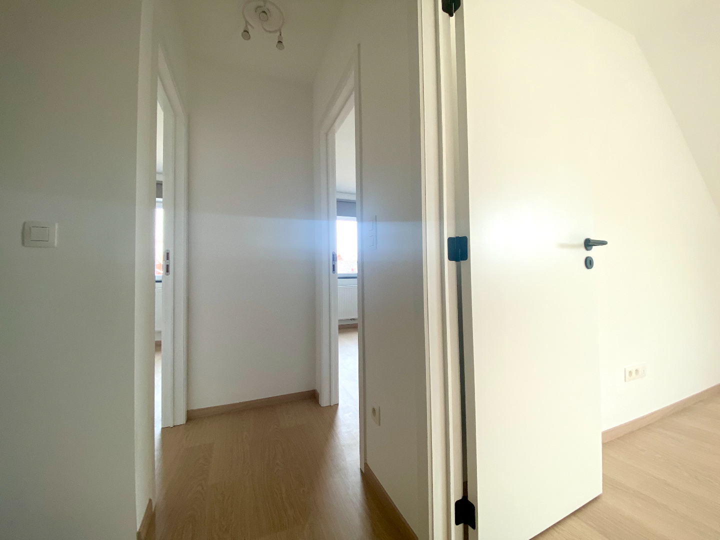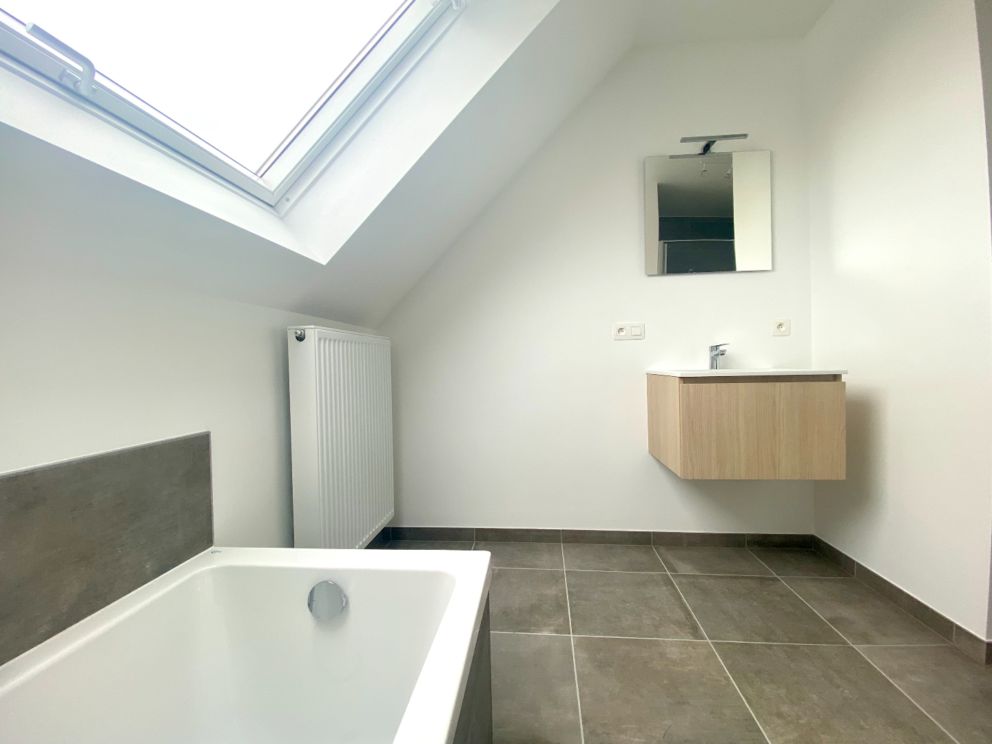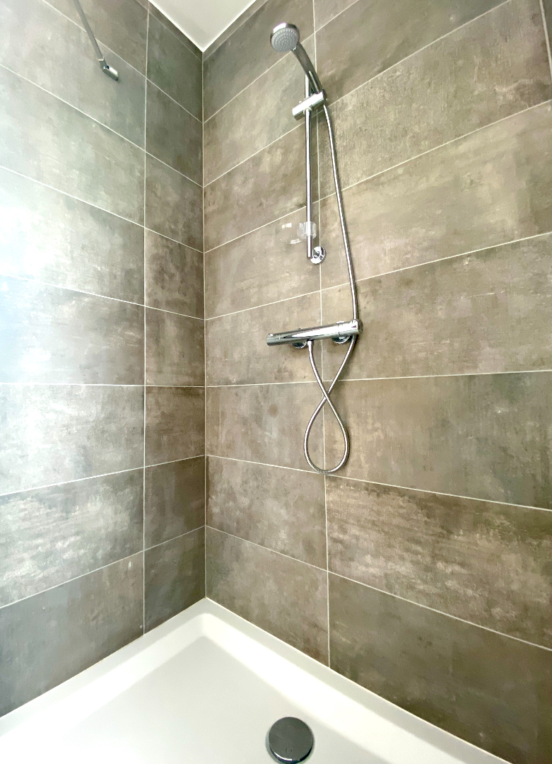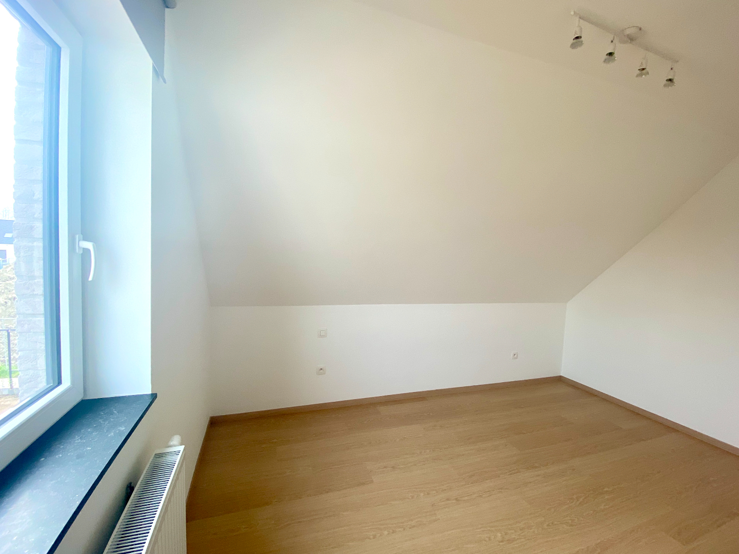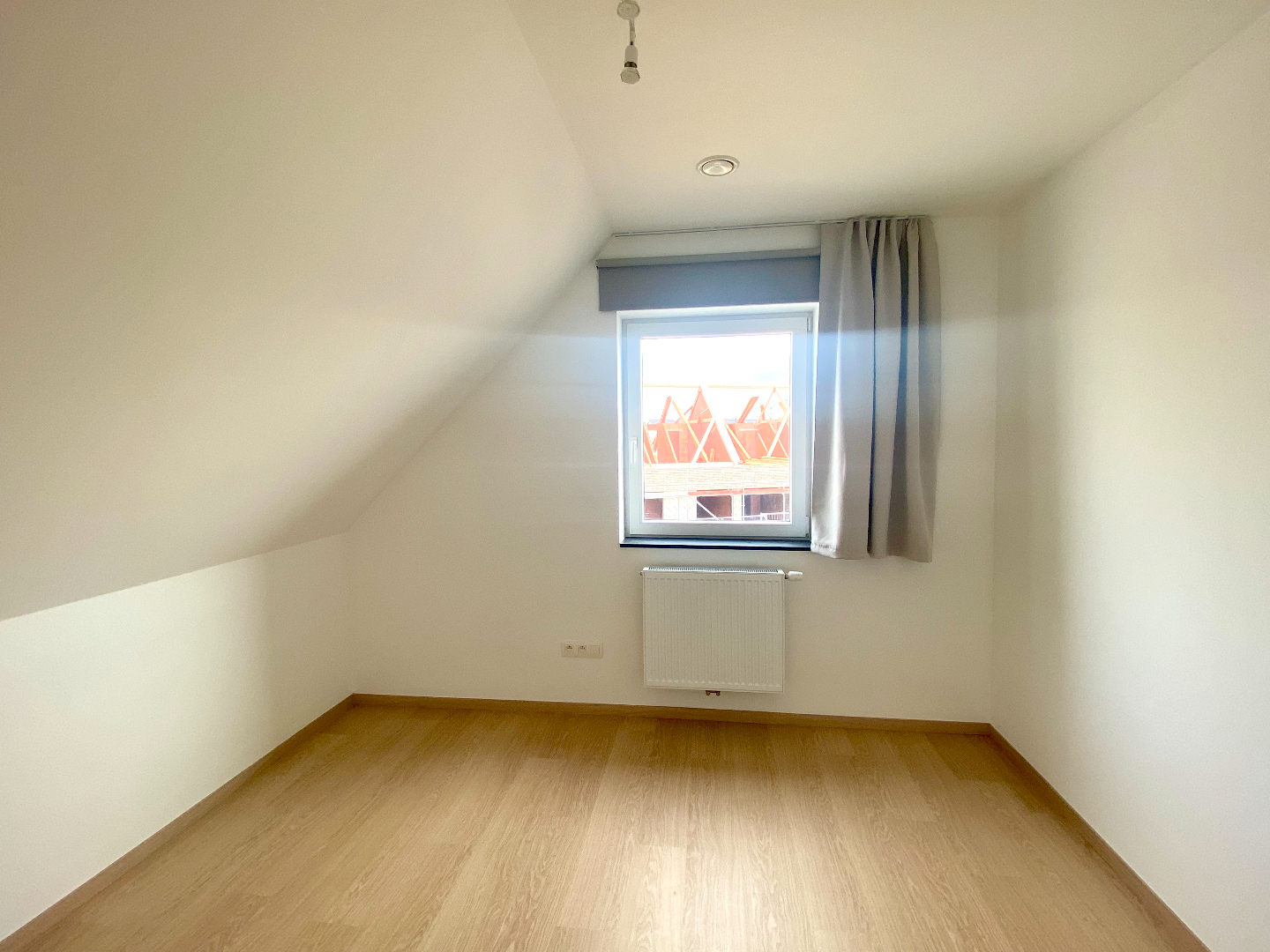 Het verdiep telt drie slaapkamers, allen reeds voorzien van verduisteringsgordijnen, en een badkamer met toilet - aparte douche - ligbad en wasmeubel.