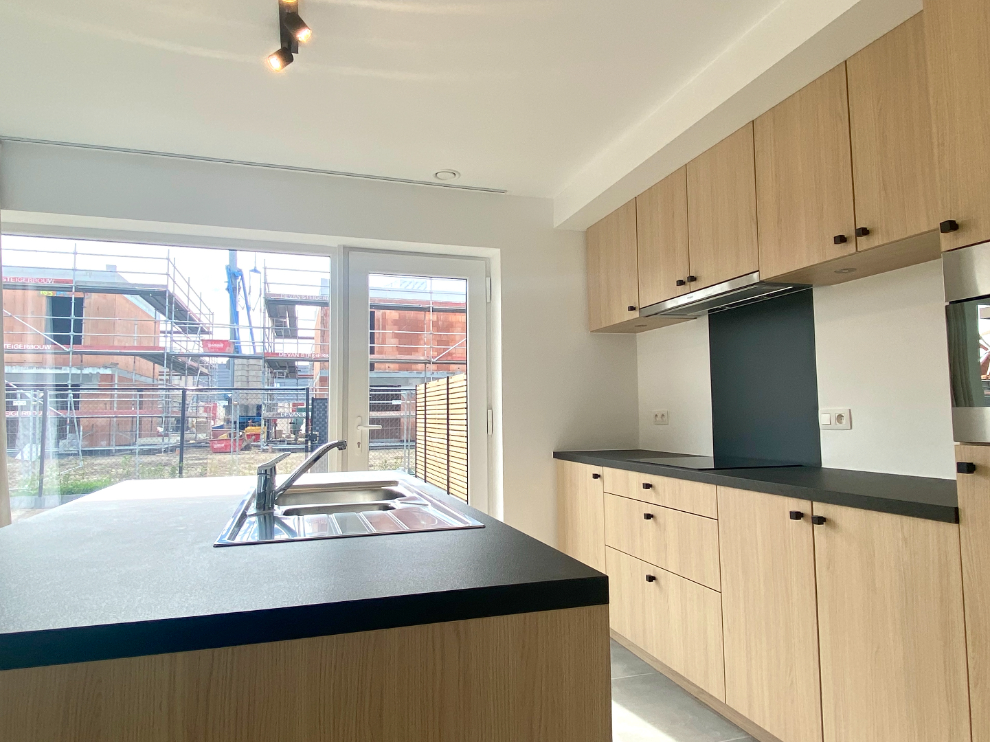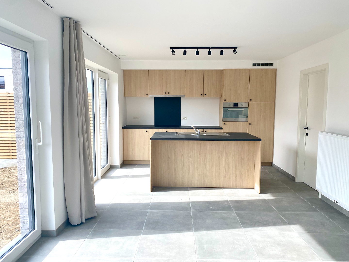 U wordt verwelkomd in de inkomhal met gastentoilet, een heerlijke lichtrijke leefruimte met om de hoek de prachtige keuken met eiland die de bewoners zeker zullen bekoren. Een prachtig zicht rondom de woning, het gras werd reeds gezaaid, het terras reeds besteld!