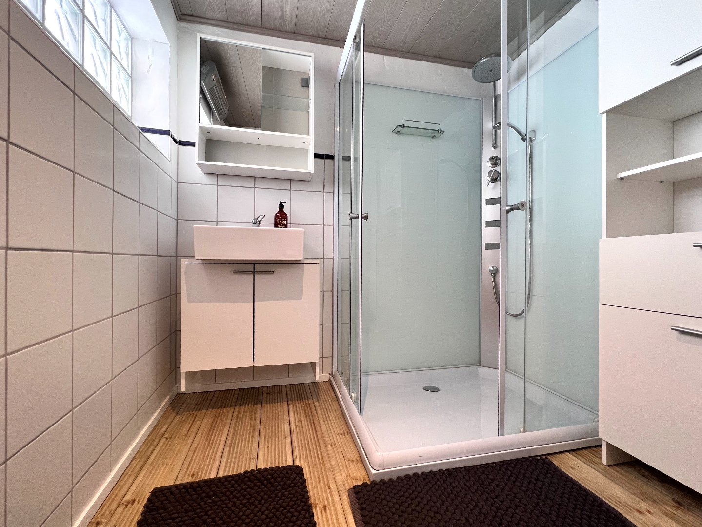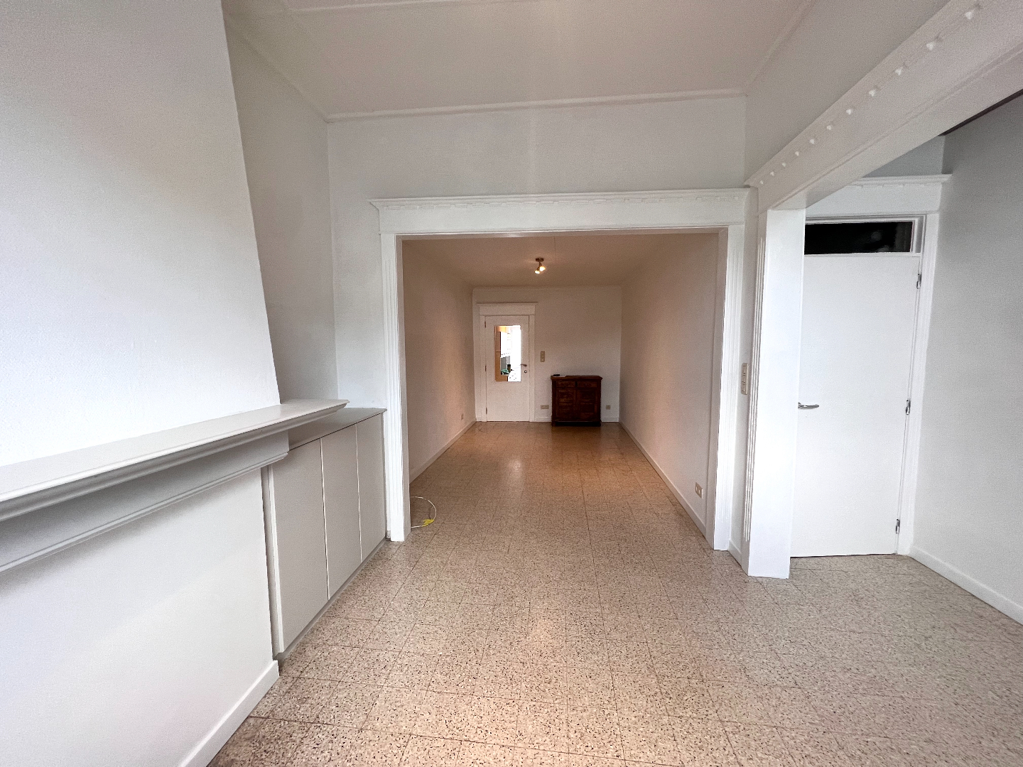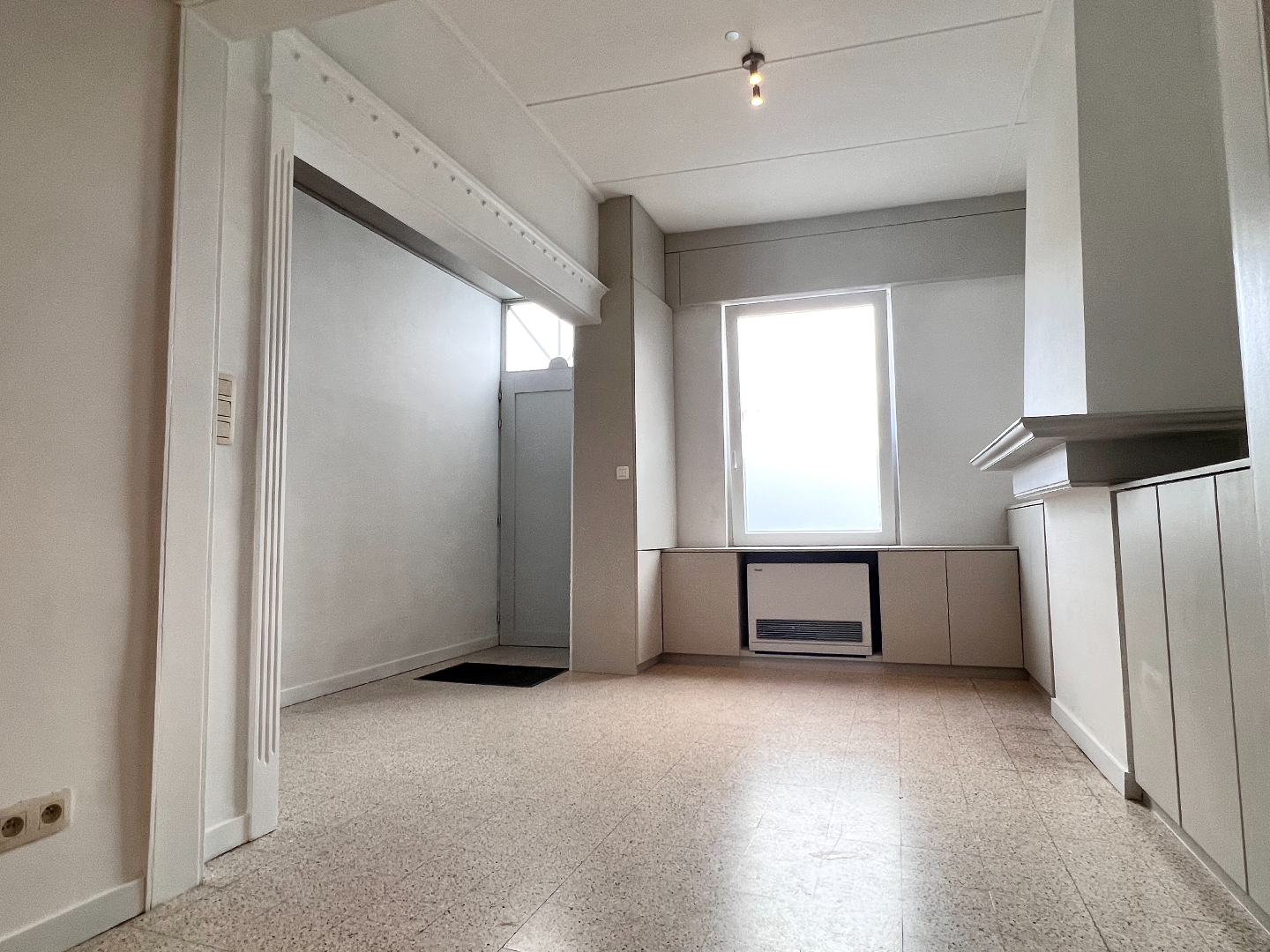 De woning werd gerenoveerd en omvat een grote leef- en eetruimte, keuken waar gemakkelijk een eettafel kan geplaatst worden, badkamer met douche en wasmeubel. Een ruime was- en berging met apart toilet is achteraan gelegen.