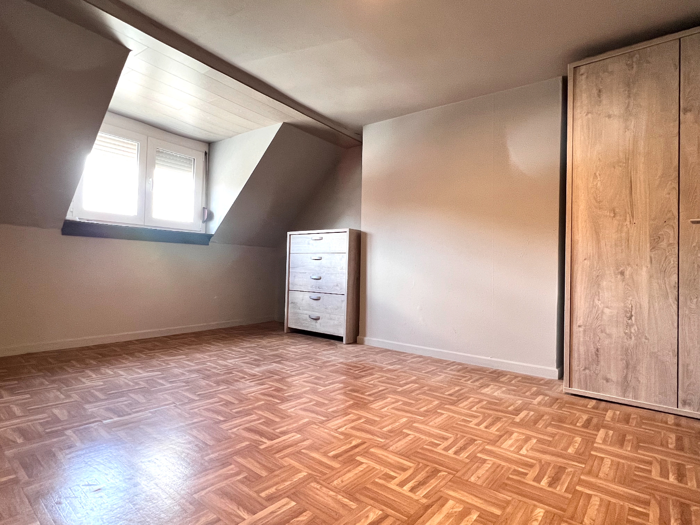 Op het verdiep 2 slaapkamers, de zolder is geïsoleerd en te bereiken met een uitschuifbare trap.