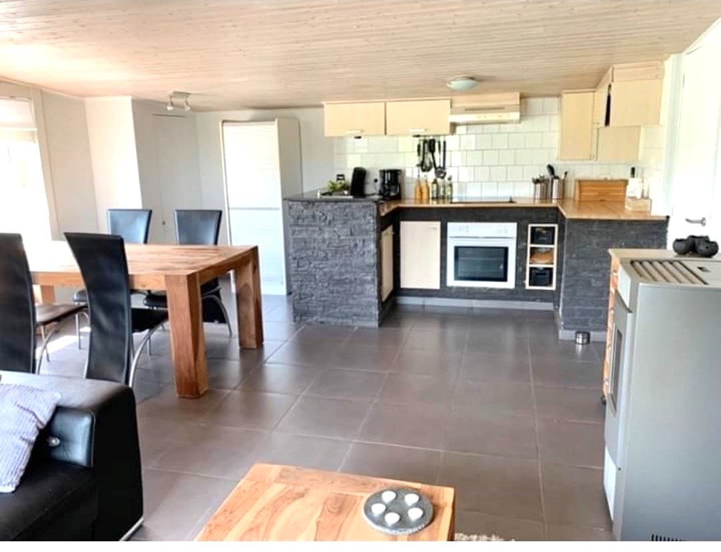 Verwarming gebeurt met een pelletkachel. De voorraad kan u kwijt in de buitenberging of tuinhuis. Het terras is volledig omheind.