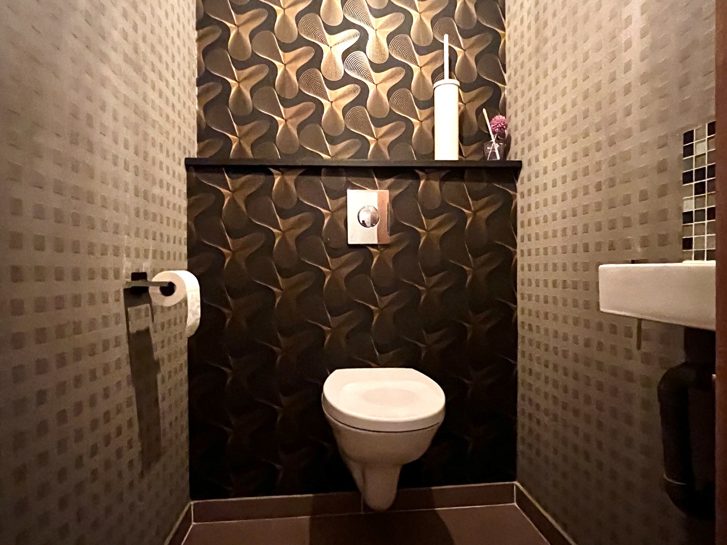 Binnenkomen in de inkomhal met gastentoilet, vooraan was- en berging.