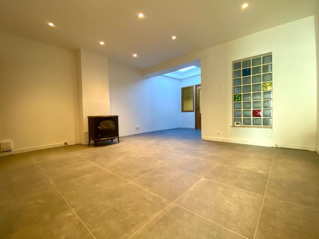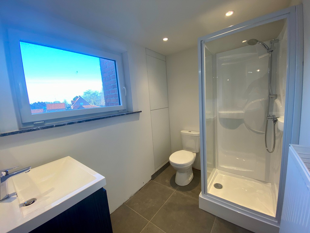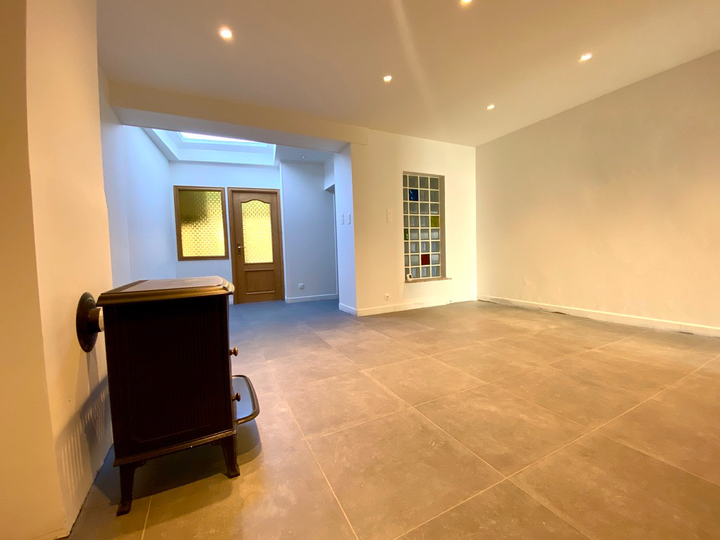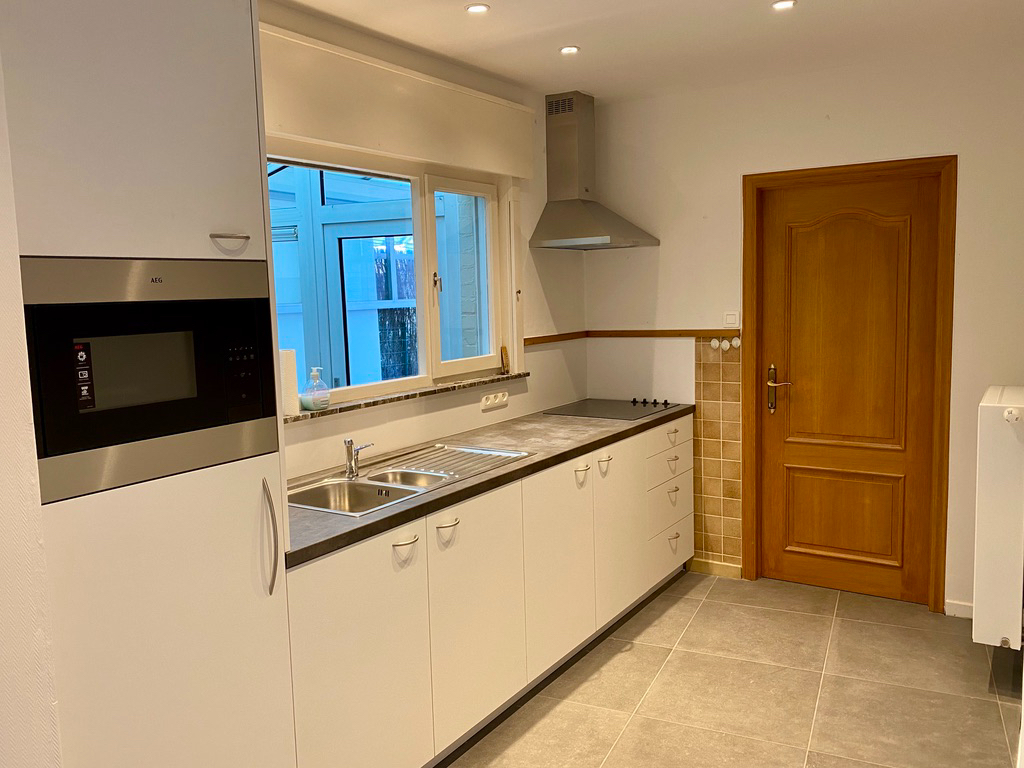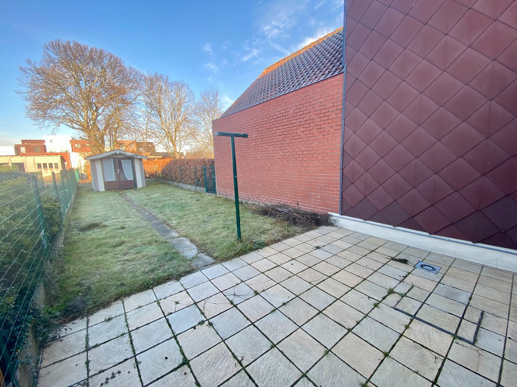 Afgesloten tuin met terras en tuin. De plinten in de badkamer worden nog verder geplaatst alsook plinten in de leefruimte worden nog geschilderd.