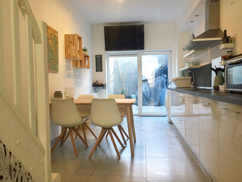 In een rustig straatje, niet ver van het centrum gelegen, zoekt deze gezellige woning nieuwe huurders. Binnenkomen in de inkomhal met apart toilet, aangename leefkeuken met toegang tot het zonnig terrasje. Op het eerste verdiep de tv-hoek en trendy badkamer met ligbad en wastafel, onder het geïsoleerd dak vind je de slaapkamer. De woning is volledig vernieuwd, overal cv op aardgas, pvc-ramen met dubbele beglazing, nieuwe hoogrendementsketel en elektriciteit volledig conform.