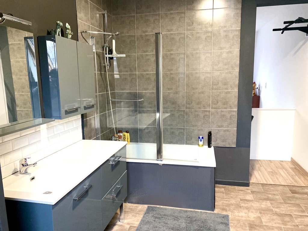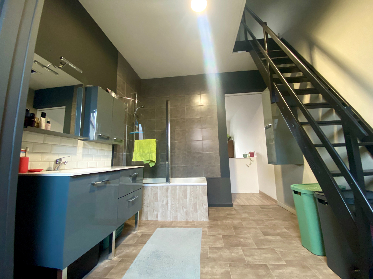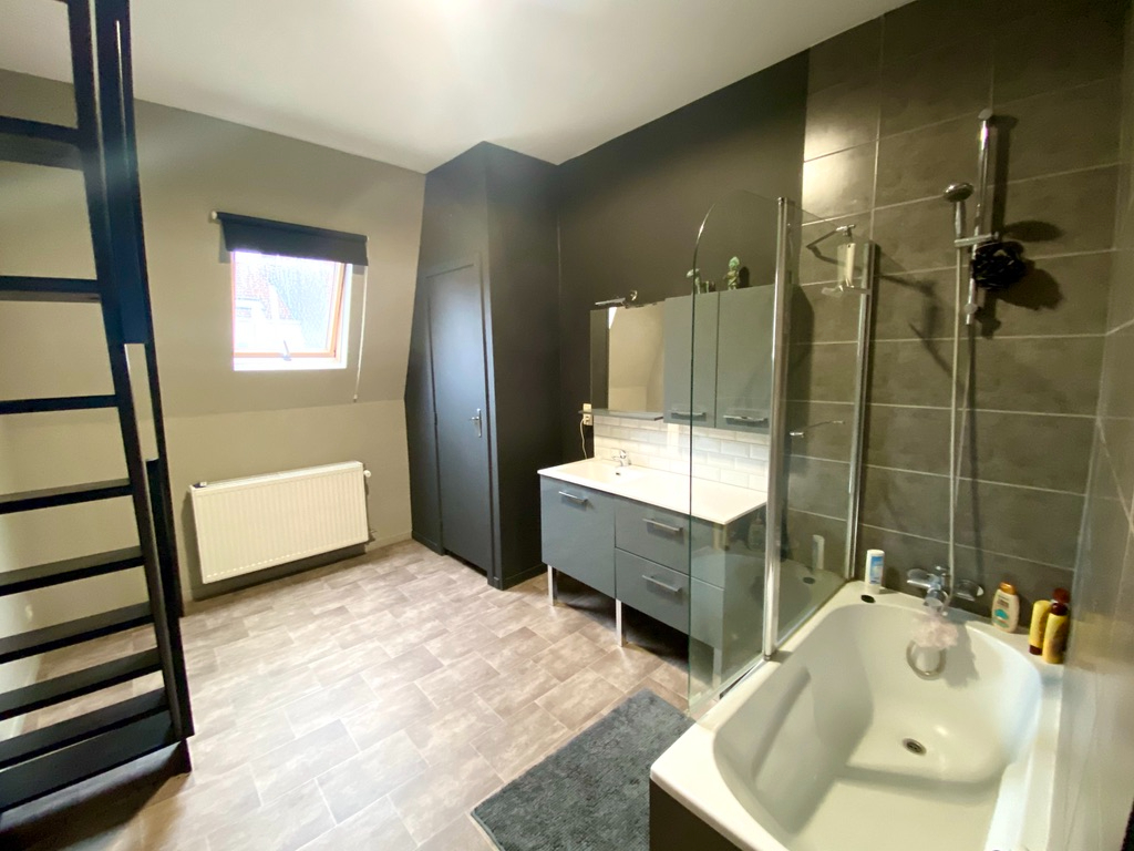 Het eerste verdiep biedt plaats tot een kleine tv-hoek en de badkamer (ligbad met douchefunctie - enkele wastafel).