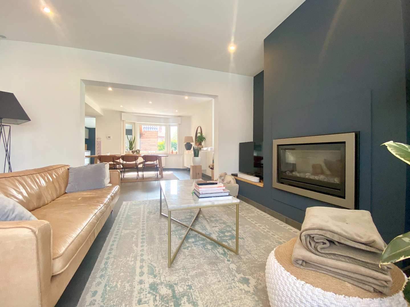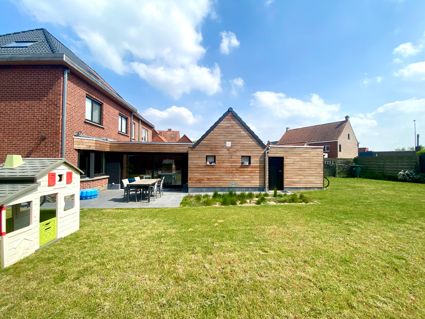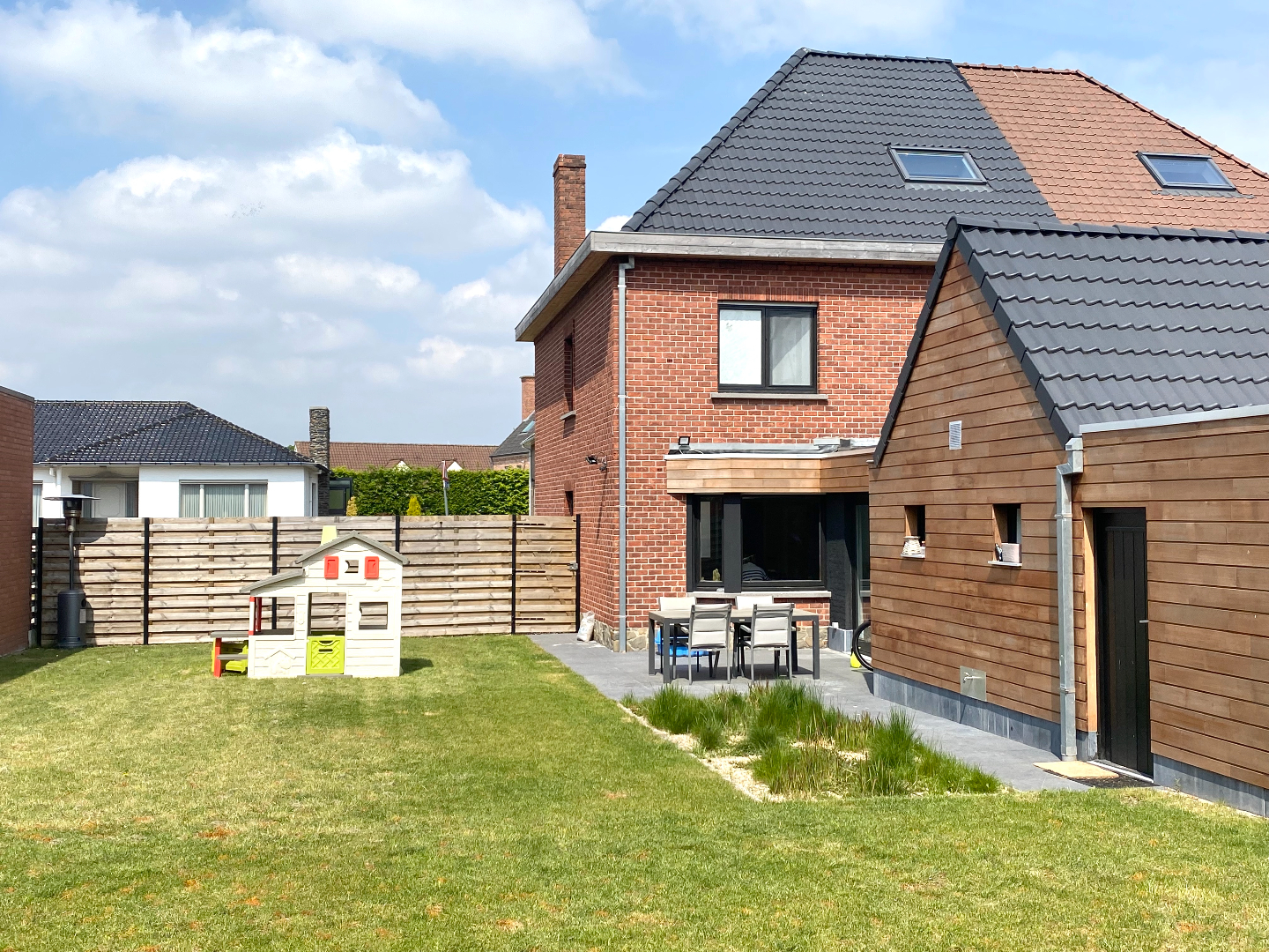 Bij het binnenkomen overvalt u meteen het waauw-gevoel, hier wil ik verder kijken!!! Heel gezellige leef- en eetruimte met zicht op een zalige tuin en uitgerust met een gashaard, een keuken om u tegen te zeggen, koken is nog nooit zo plezant geweest en de aansluiting naar het terras is handig met het grote schuifraam, wat verderop een apart toilet, een was- en bergplaats en de badkamer om er uren te spenderen, zo fijn!!! Een handige berging achteraan die ook via de tuin te bereiken is, plaats zat voor de fietsen!