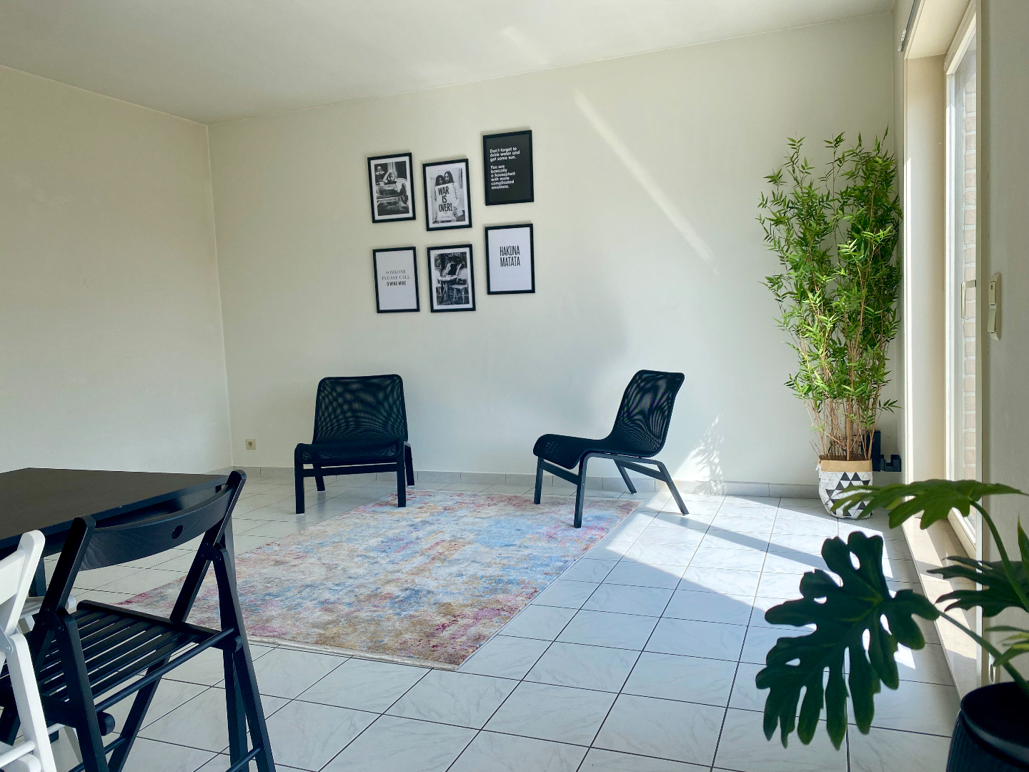Twee slaapkamers, badkamer met ligbad - wasmeubel - toilet en plaats voor de wasmachine, kleine berging, gezellige leefruimte en keuken met zicht op het terras.