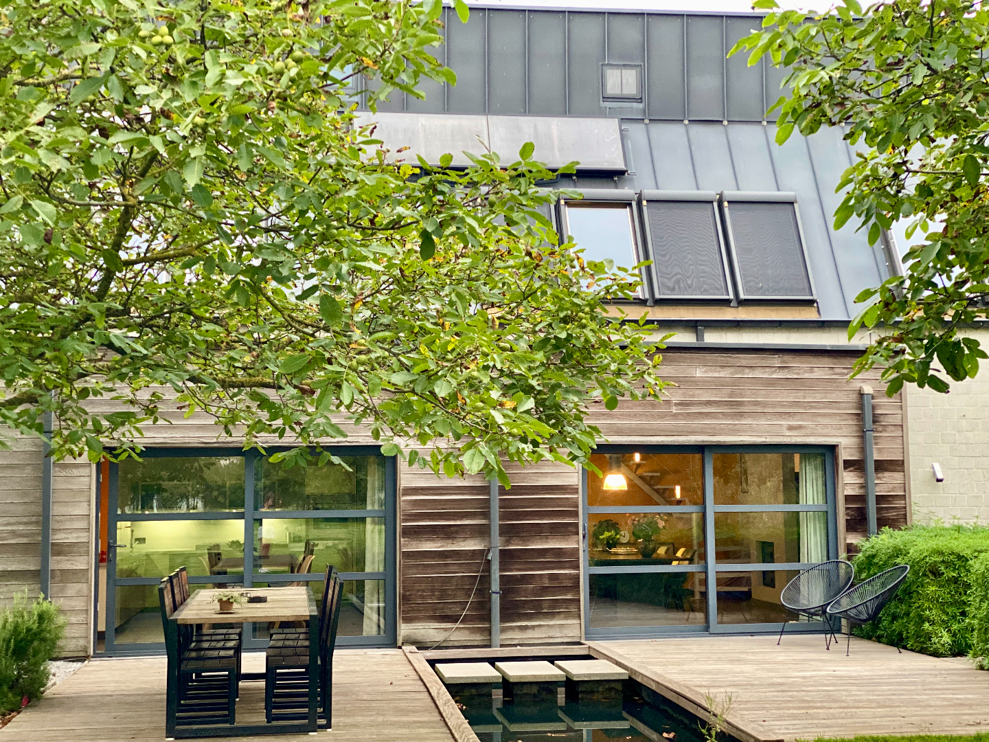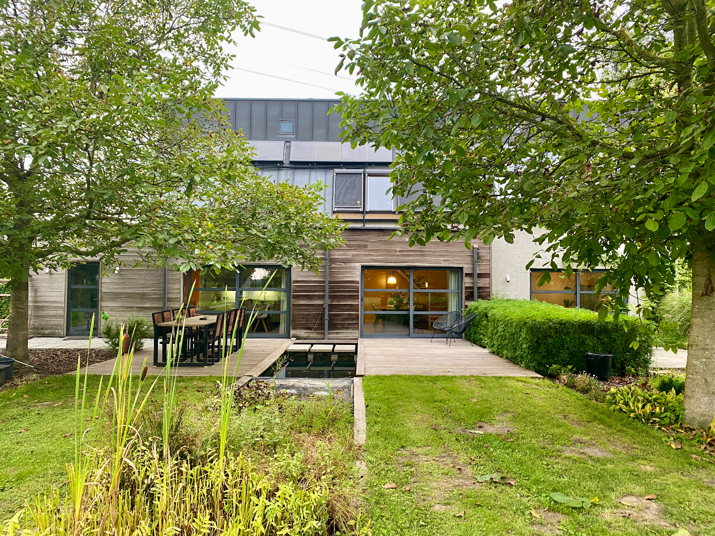 "Het aards paradijs begint hier in de Bijlkenstraat 2"...dit was de filosofie van Klara toen ze deze percelen grond kocht in het landelijke Nevele. De passie om architectuur te verenigen met de natuur zette haar aan om hier een bijzondere woning neer te zetten, als architecte heeft zij met haar kinderen hier fantastische jaren beleefd. Nu de kinderen het nest uit zijn is de tijd rijp om op zoek te gaan naar een koper voor haar woning.