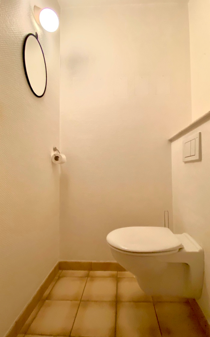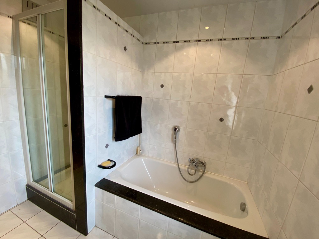 - gastentoilet en badkamer met douche, ligbad en wastafel