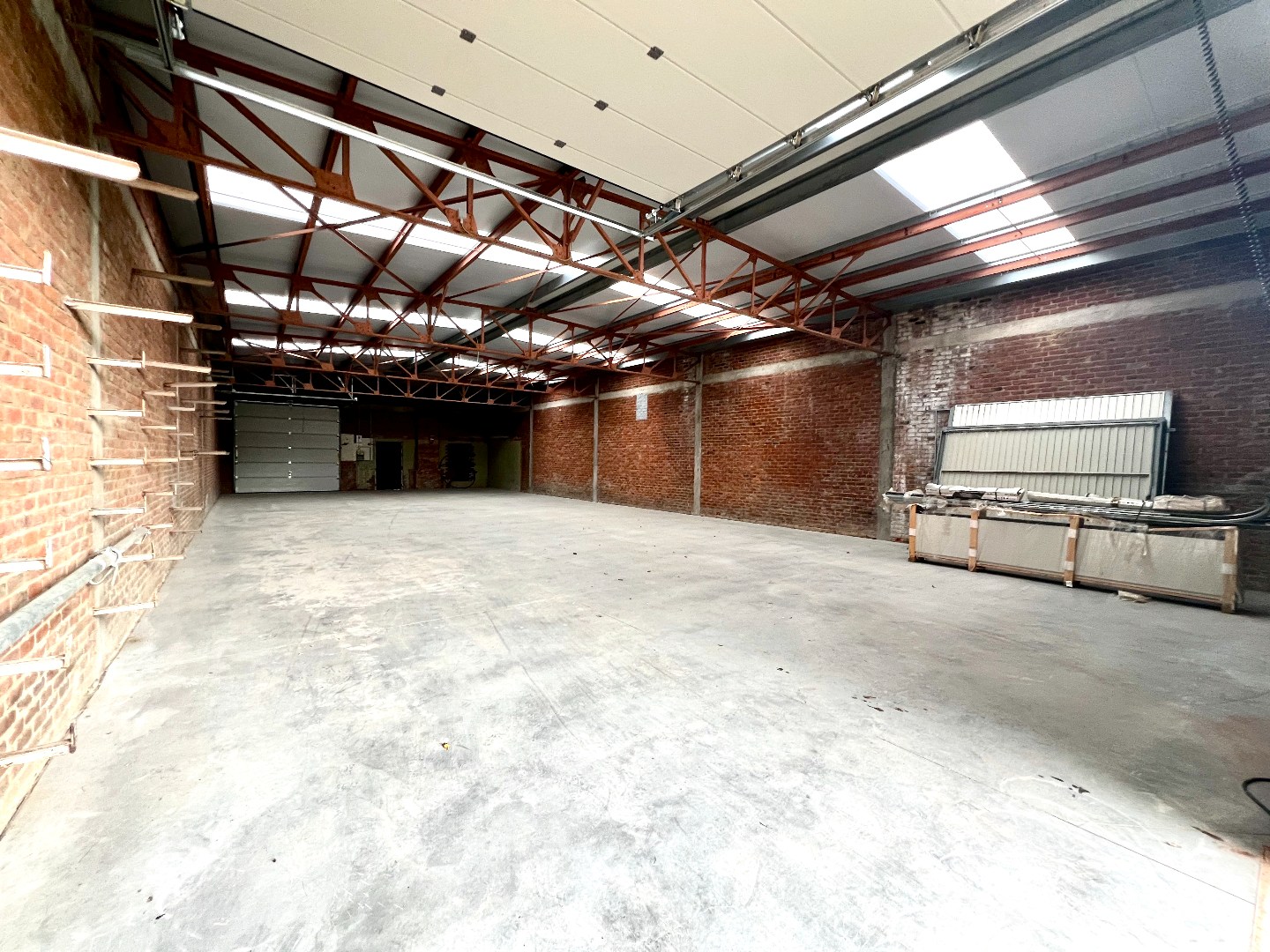 Deze loods is volledig vernieuwd van dak tot riolering. 1 aluminium hoofddeur , 2 elektrische sectionale poorten ( 3.55m hoogte,3.46 m breedte ) basis elektriciteit aanwezig , 3 *230 volt aanwezig mits een kleine aanpassing is 3 * 400 volt verkrijgbaar , 3 * 15 000 liter regenwater beschikbaar , alle voorzieningen aanwezig , riolering voor wc en afwasbak , verwarmingselementen kunnen aangesloten worden. Nieuwe betonvloer , achteraan ruime parking of buitenopslag in grasdallen , ruime gras partij , nieuwe afsluitingen volledig vlakke oppervlakte geen hellingen nog trappen. Dit pand is gelegen in woongebied, meer specifiek in BPA - Eiland Noord (zone voor menging aaneengesloten en halfopen bebouwing en zone voor stapelplaatsen en kleine bedrijven, niet storend voor de woonomgeving.