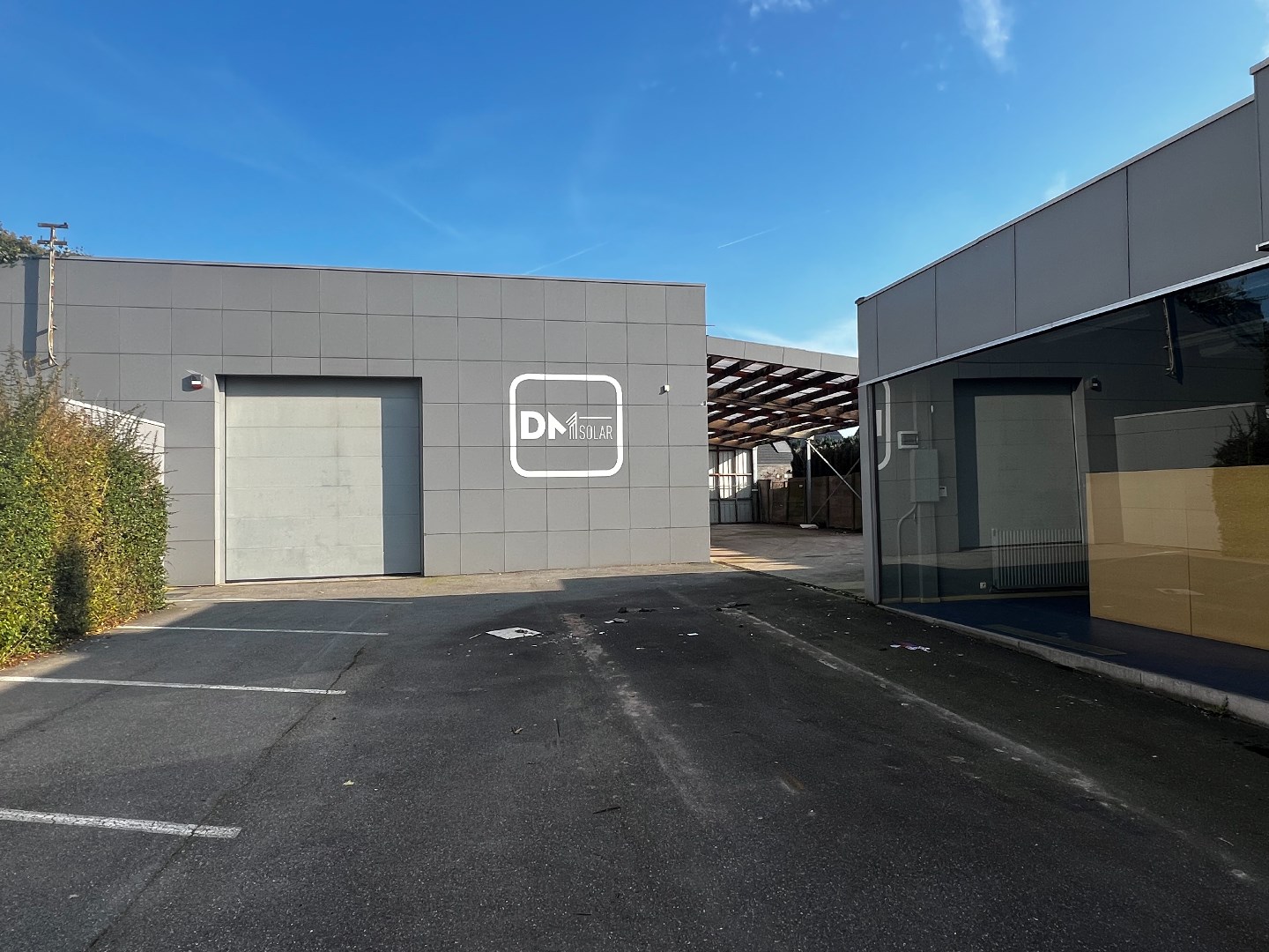 Magazijn van ongeveer 250m2 (ongeveer 5, 84 hoog, met elektrische poort (4,13m hoog, 3,76m breed), er liggen 33m2 zonnepanelen op het dak. Toilet, water, verwarming en alarm aanwezig. Tevens kan je via een zijuitgang naar de overdekte plaats naast het magazijn.