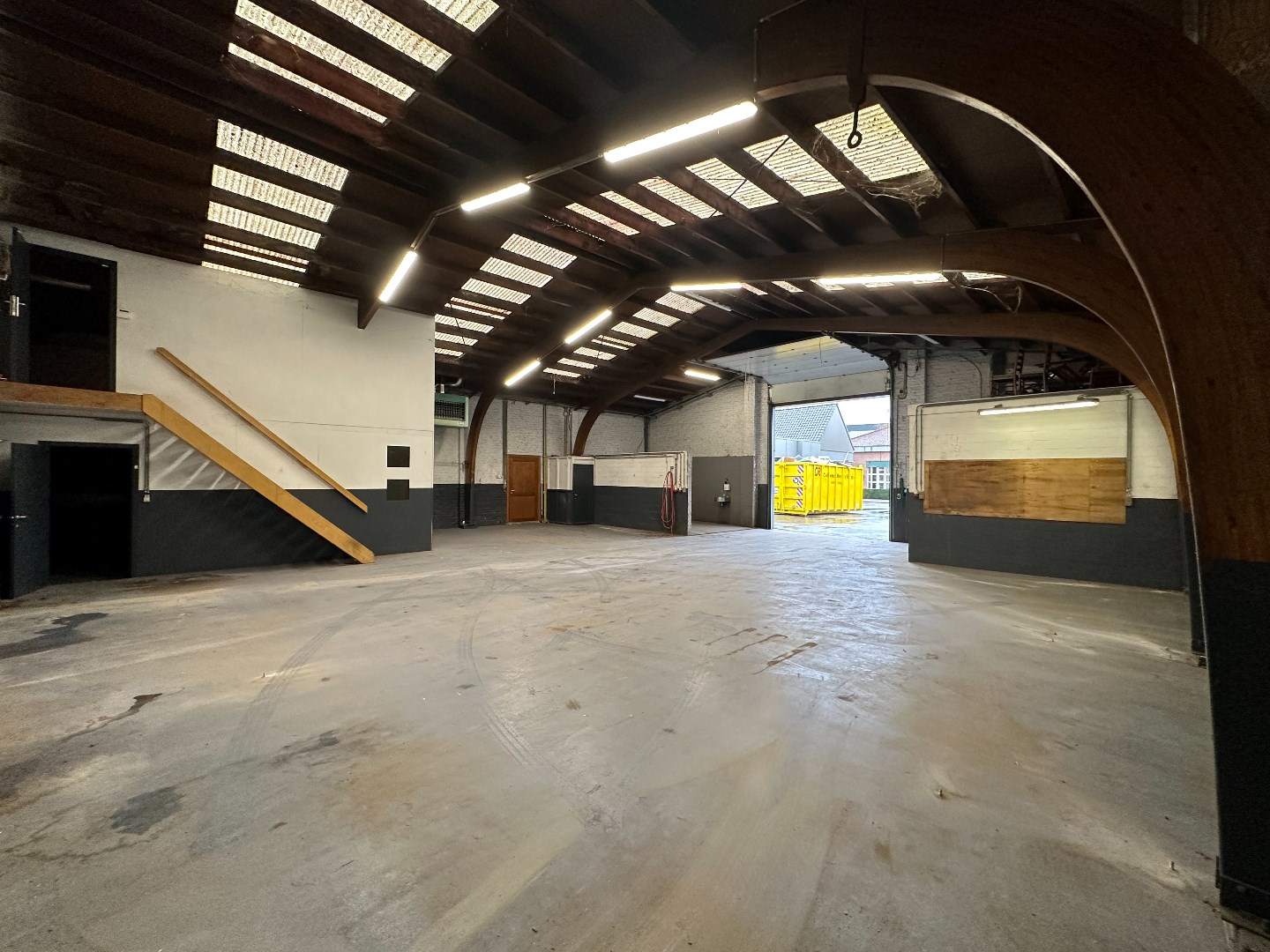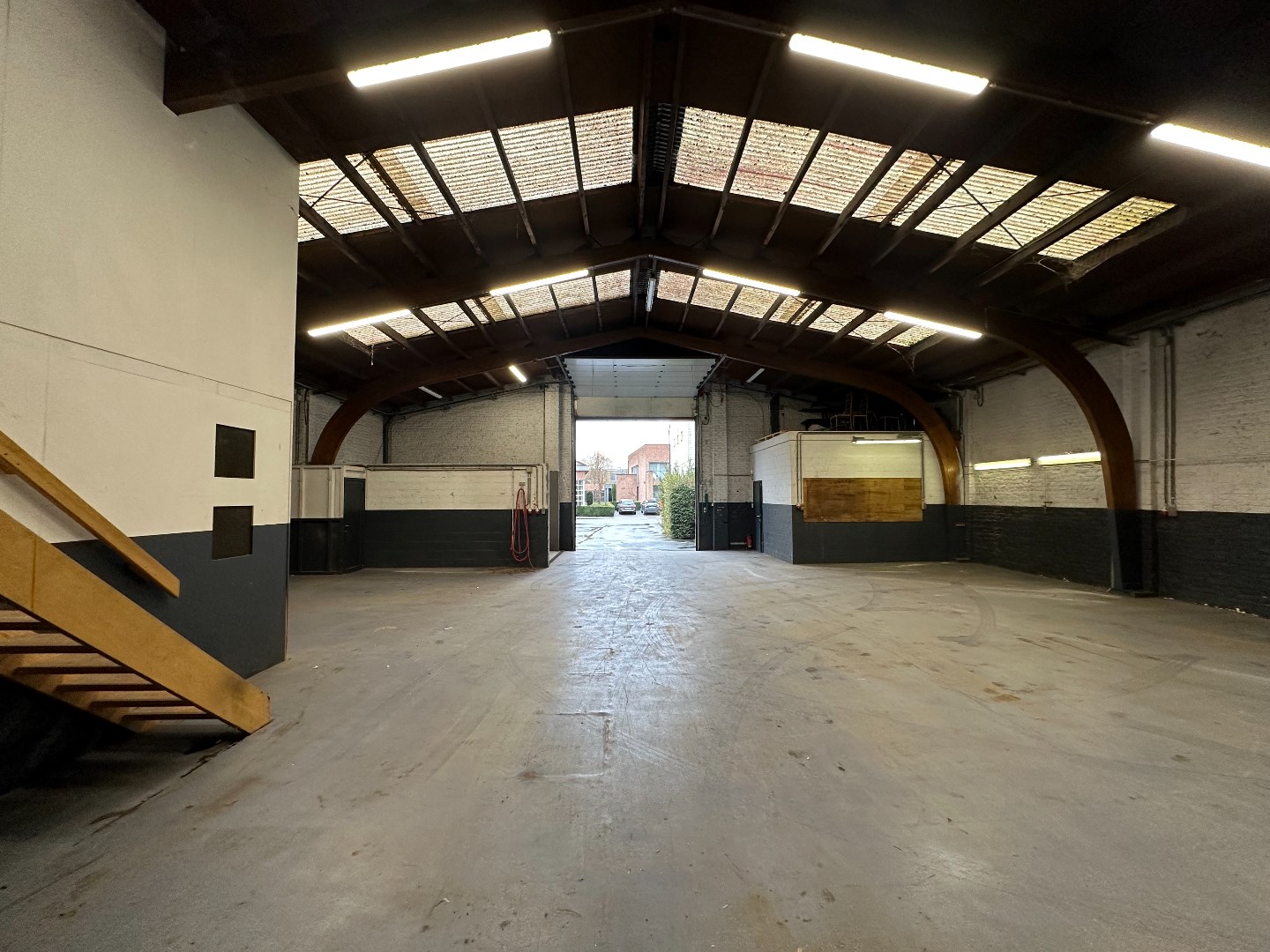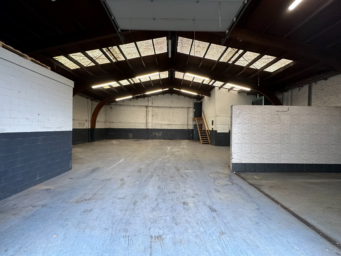 Magazijn kan verdeeld worden in compartimenten om te verhuren, kan uitgebreid worden langs de zijkant.