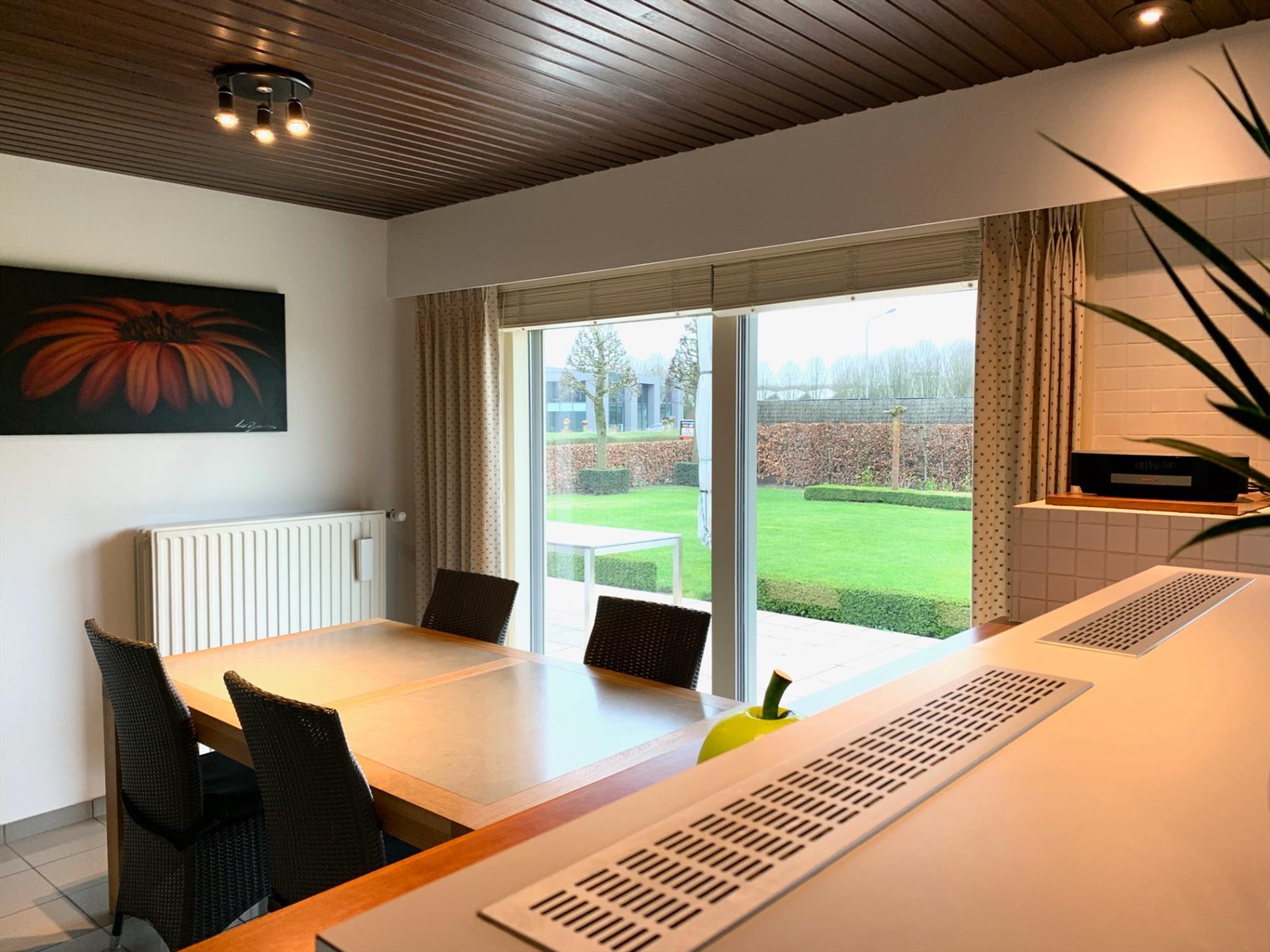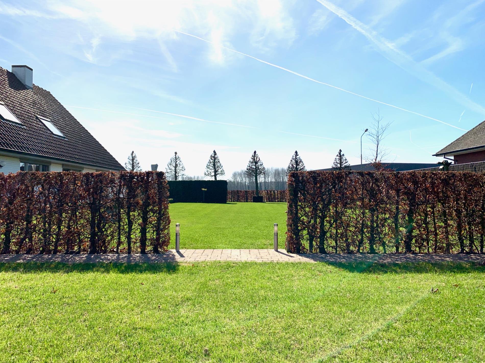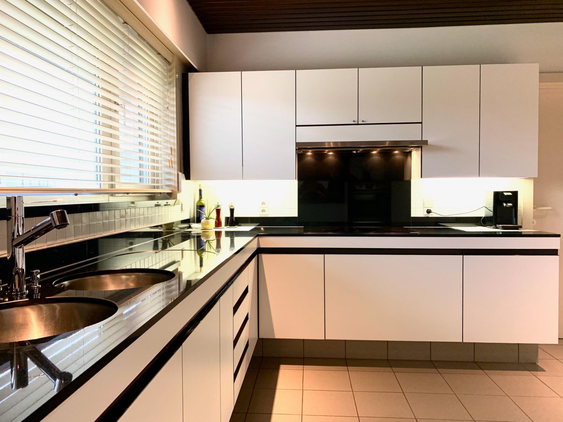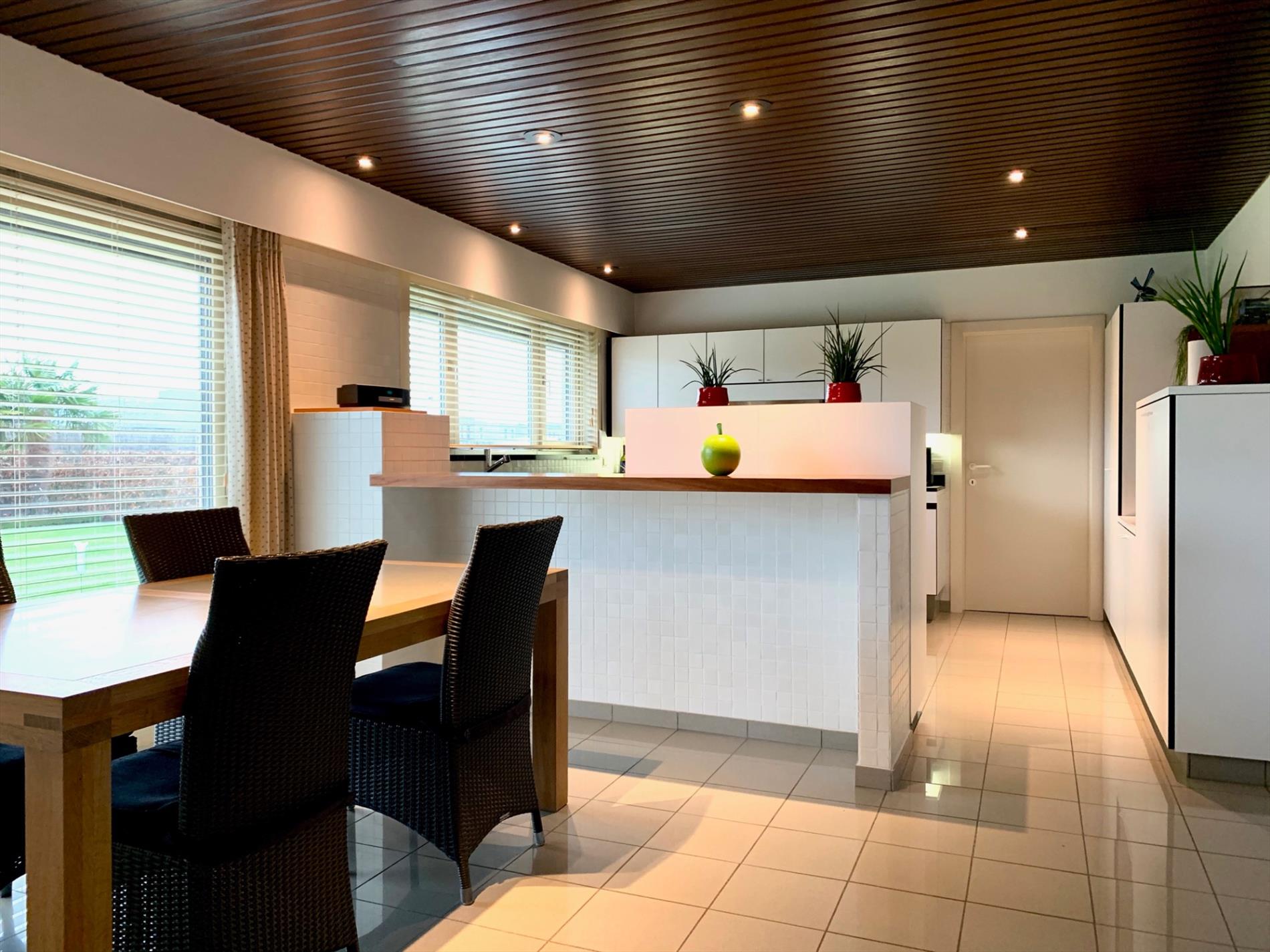 Glvl.: Inkomhal met trapzaal, vestiaire en gastentoilet, grote leefruimte en aansluitende eetplaats, grote ingerichte leefkeuken met aparte ontbijthoek, ruime wasplaats, koele berging en dubbele garage.