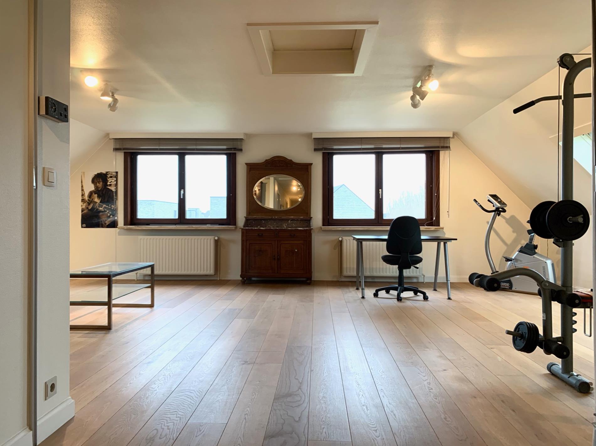 1ste V.: 2 volwaardige slaapkamers, 1 slaapkamer met aansluitende badkamer, 2de badkamer, bureauruimte en een polyvalente ruimte die als hobbyruimte of man/women cave kan worden gebruikt of als extra 2 slaapkamers die in no time zo zijn ingericht.