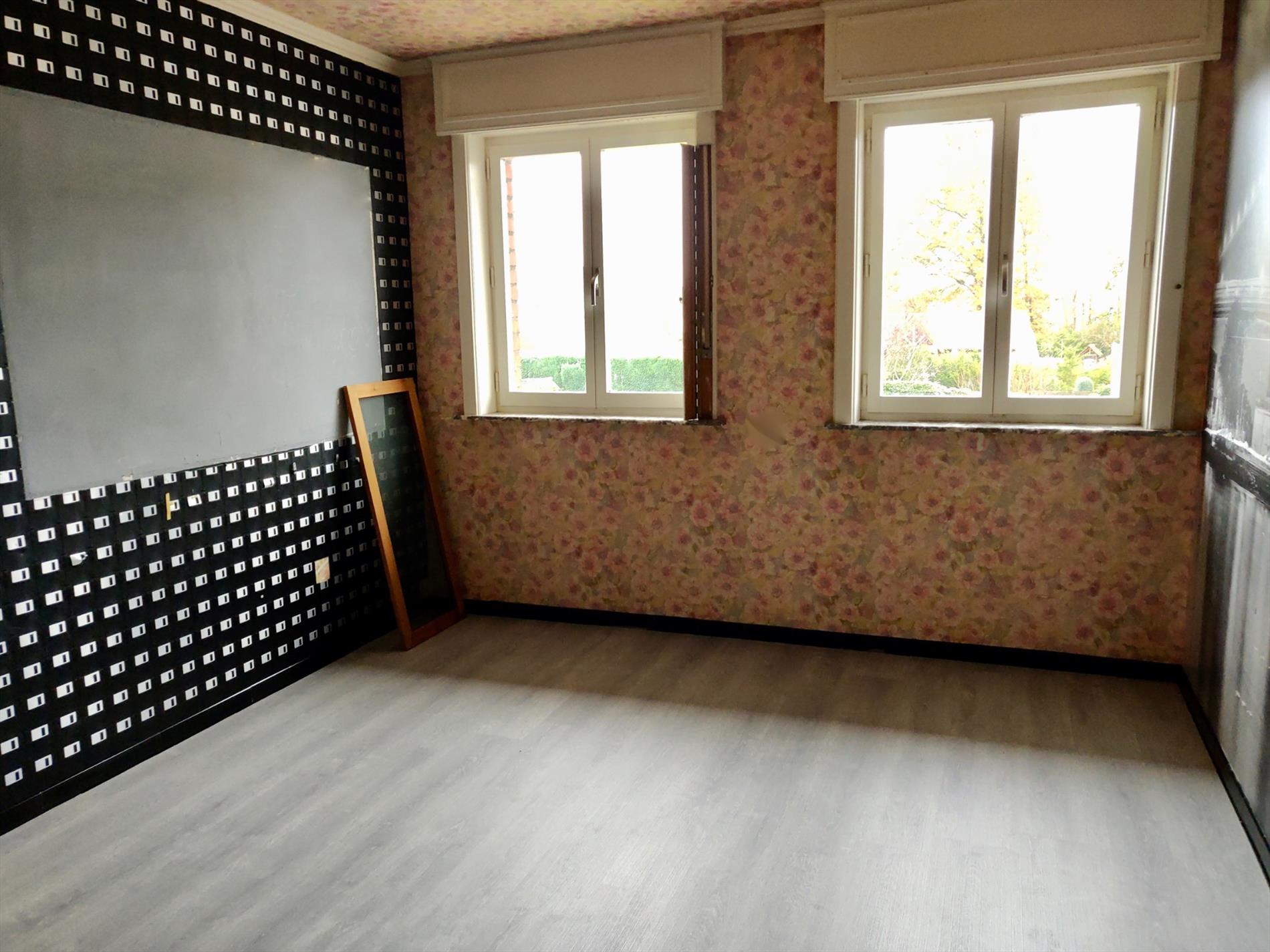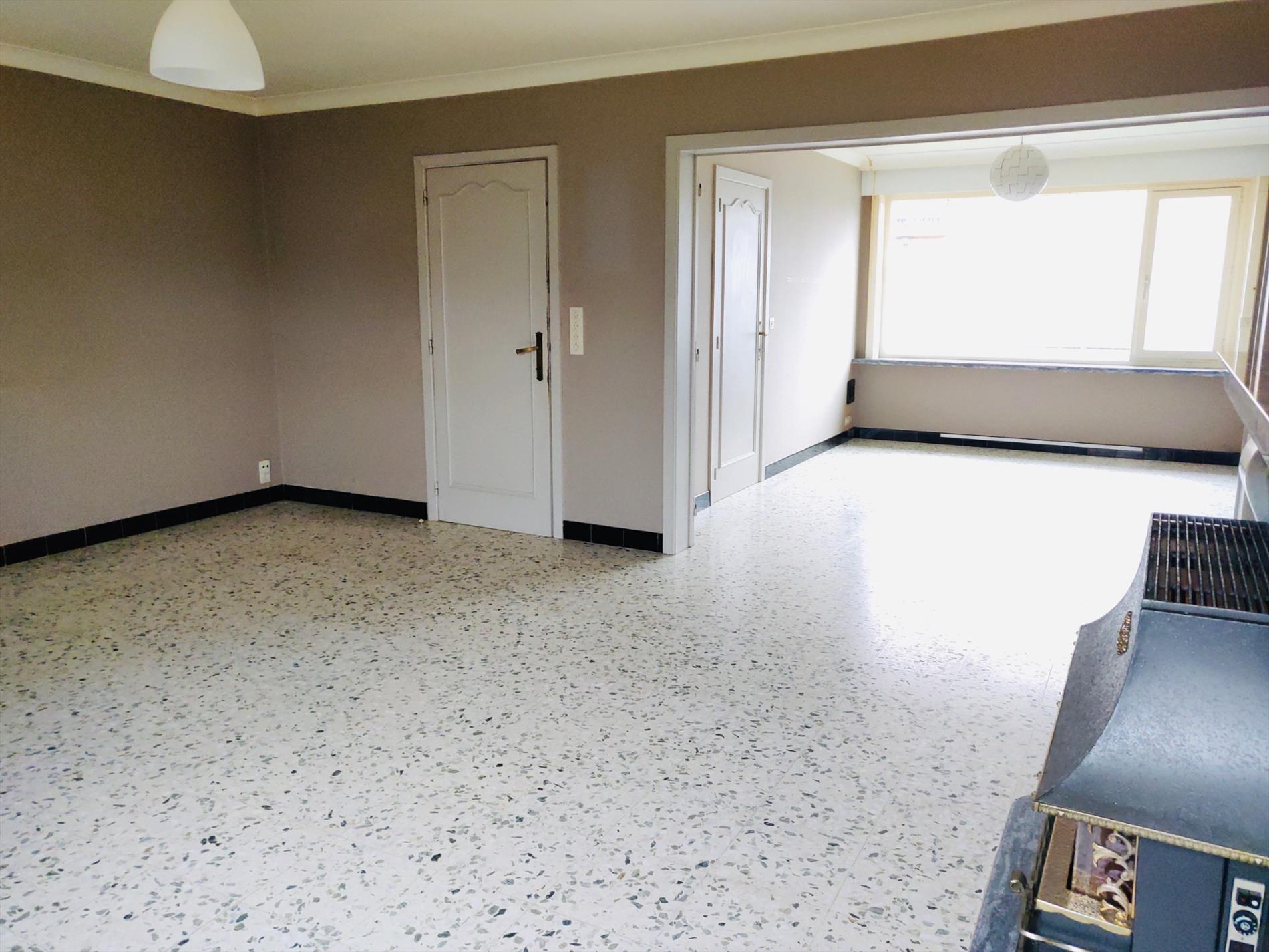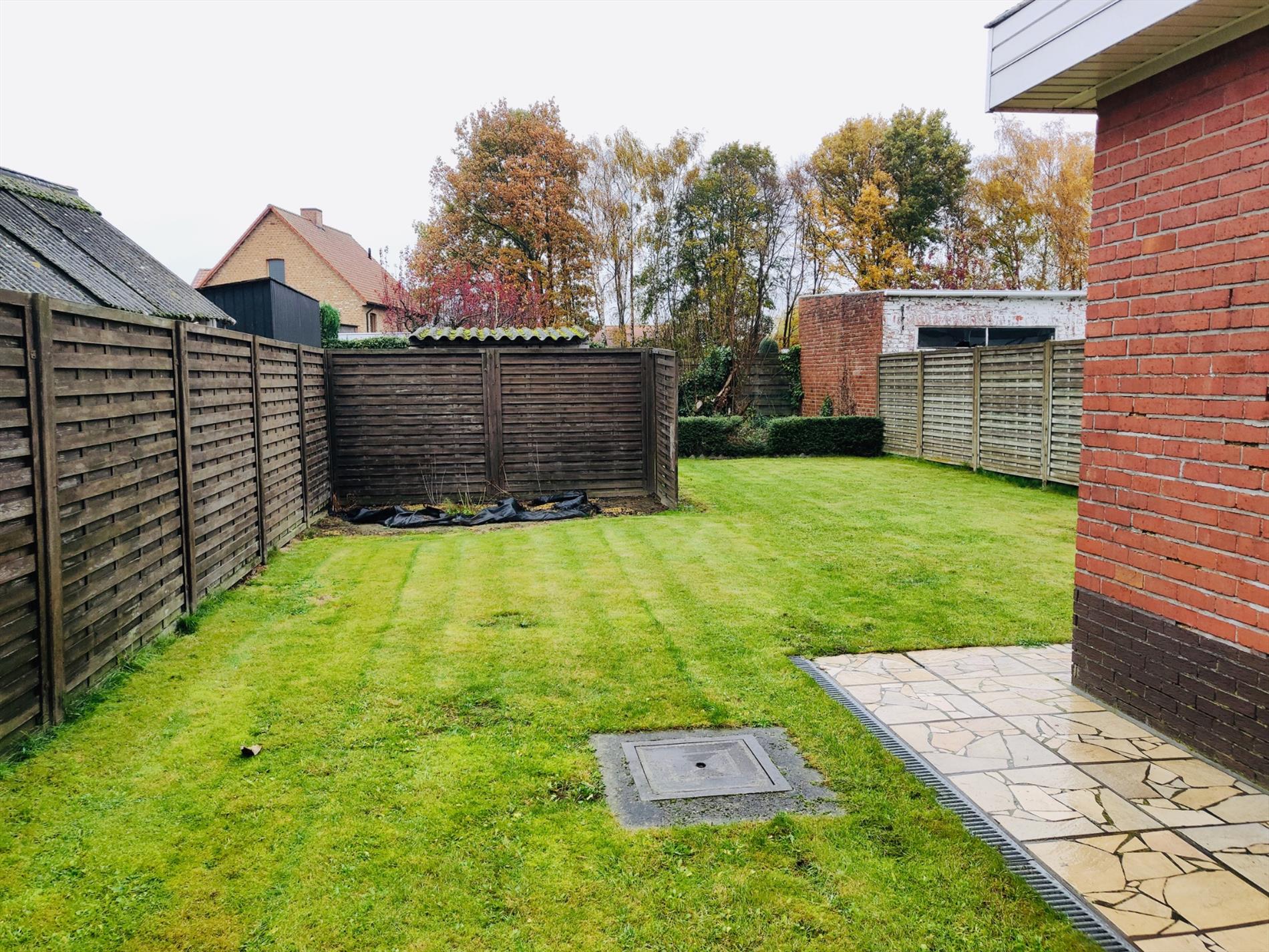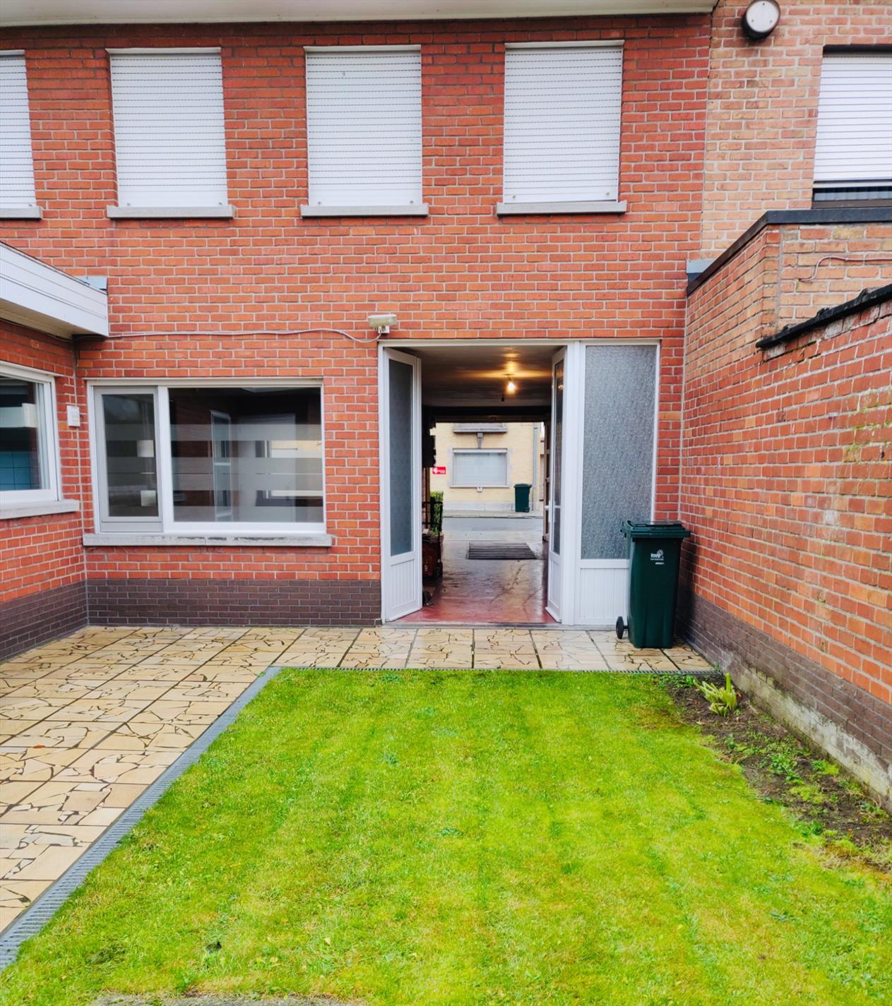 Deze kloeke woning omvat een inkomhal, leefruimte in L-opstelling, gesloten keuken met toegang tot de tuin, apart toilet en berging.