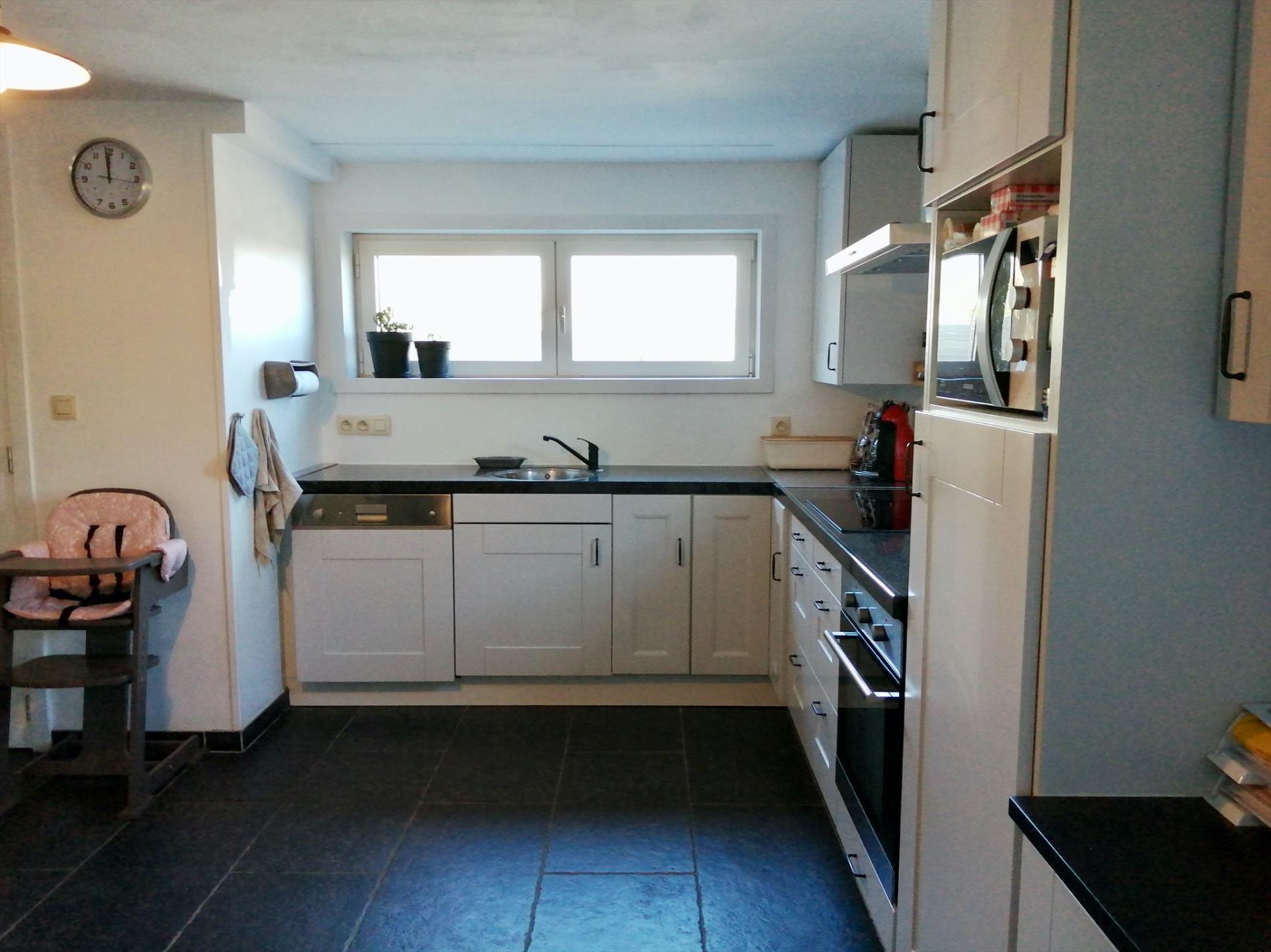 Het huis zelf bestaat uit een inkomhal, heel lichtrijke leefruimte met houtkachel voor de gezellige avonden, de keuken en berging is aansluitend achteraan te vinden van waar je ook meteen de garage kan bereiken.