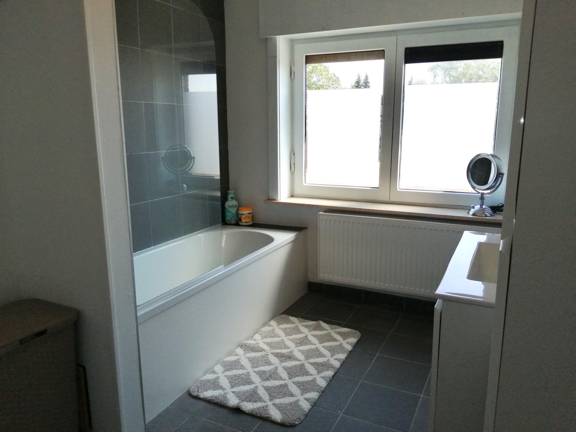 Op het eerste verdiep bevinden zich 2 slaapkamers en een nog onafgewerkte slaapkamer (reeds geïsoleerd) van ongeveer 27m2 waar u zelf nog uw ding kan doen. De badkamer ligt centraal.