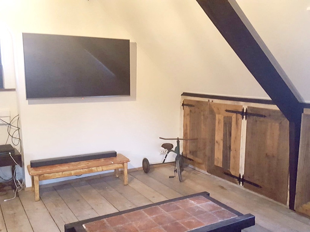 Het tweede verdiep is de zolderruimte die momenteel dienst doet als een heel charmante chill-room.