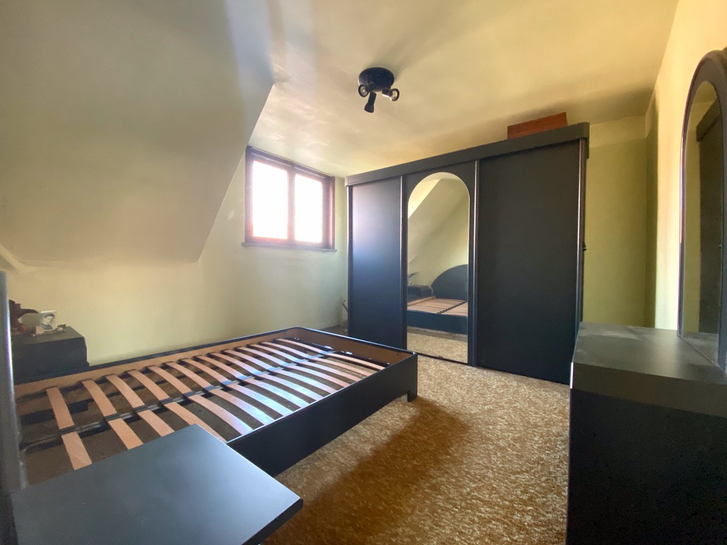 Op het verdiep 2 grote slaapkamers en een kleinere slaapkamer en een kamer waar reeds de leidingen liggen om een badkamer te steken. Zolder met onderdak.