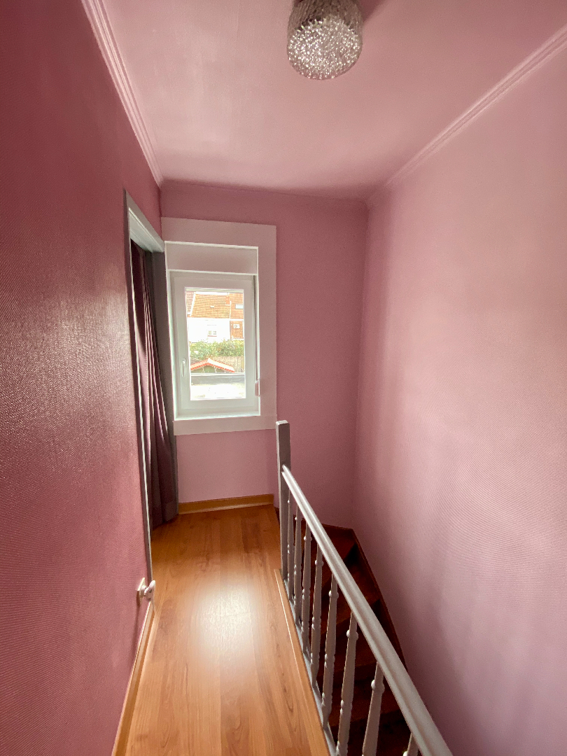 Op het verdiep twee slaapkamers en kinderkamer, met de uittrekbare trap (mogelijkheid tot steken van een vaste trap) kom je in de reeds gerenoveerde slaapkamer onder het dak.