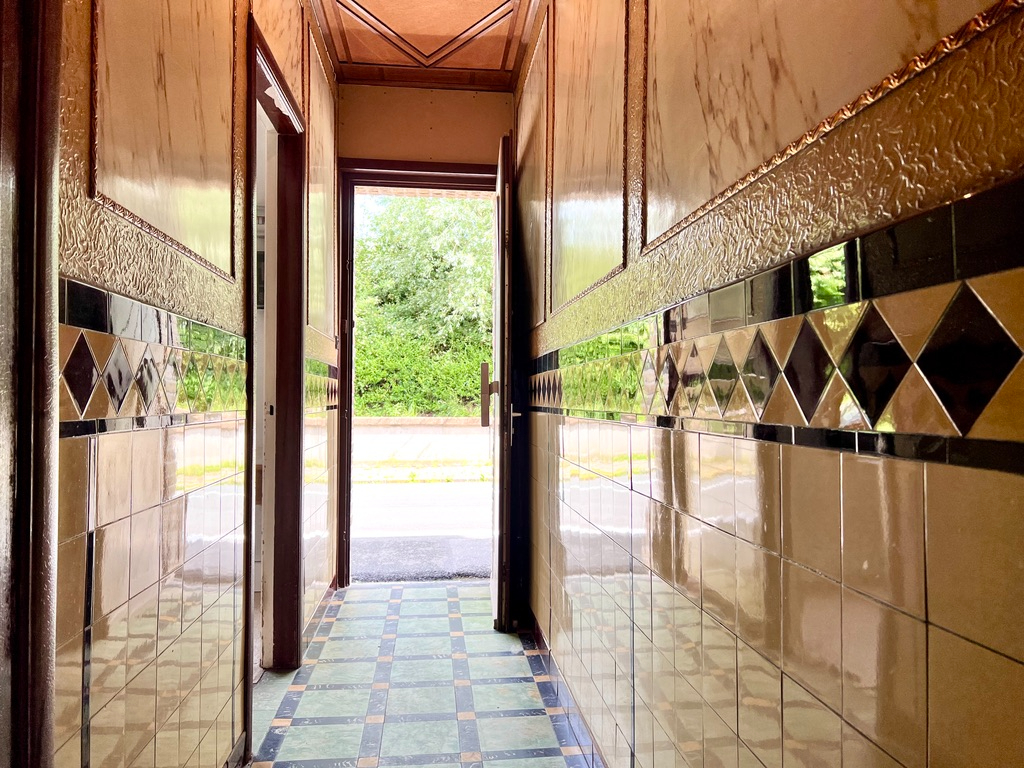 Inkom, rechts een kamer en de deur naar de trap om het verdiep te bereiken.