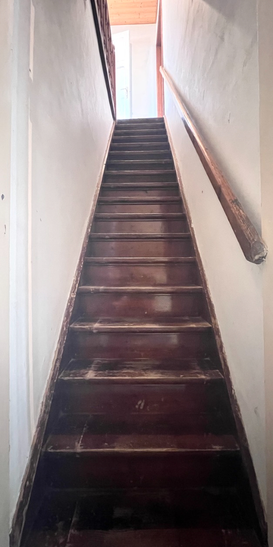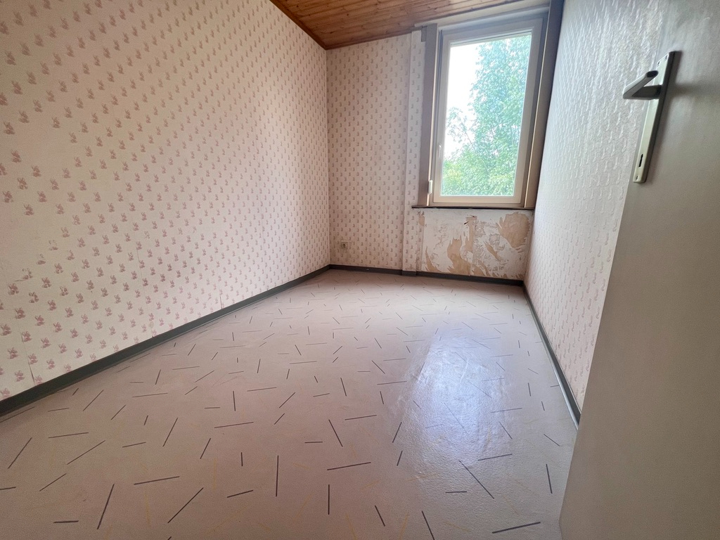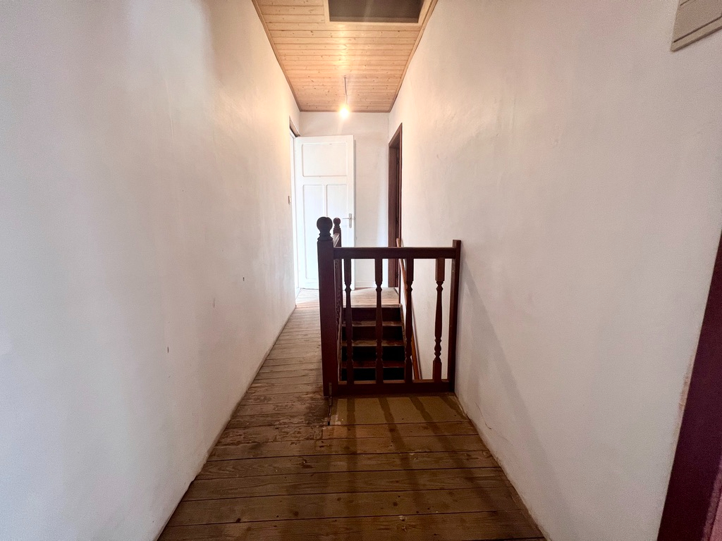 Het verdiep telt DRIE SLAAPKAMERS (houten plankenvloer onder de bekleding), mits isoleren en steken vaste trap kan je de zolder omtoveren tot extra slaapkamers. Een kelder is ook aanwezig.