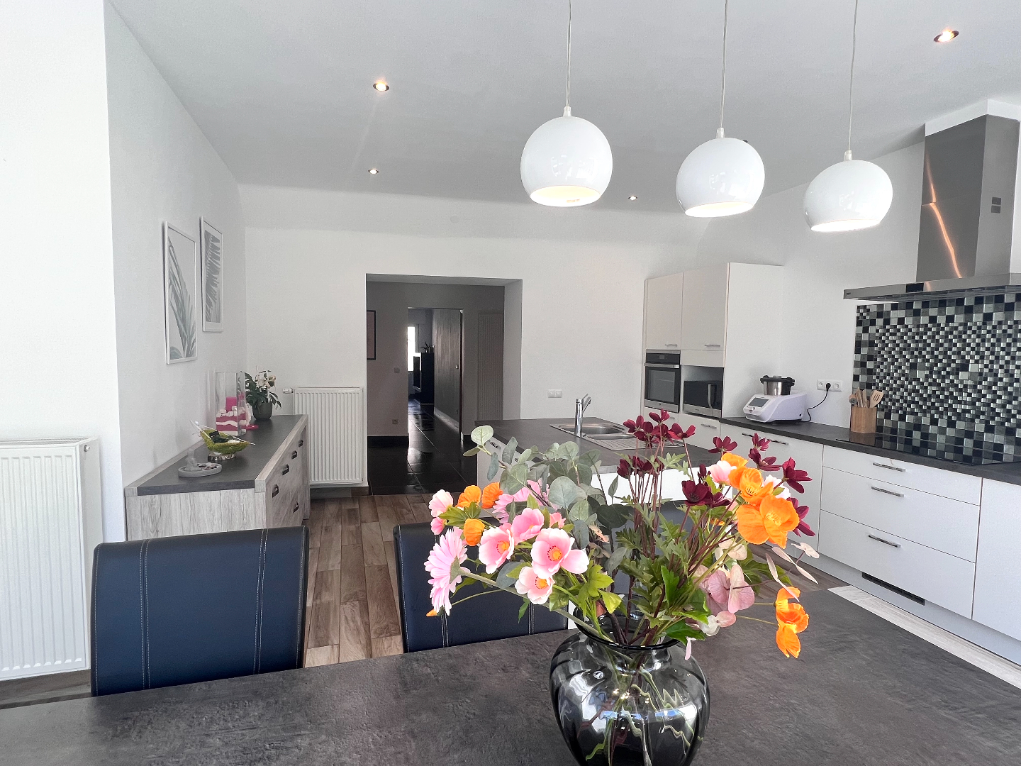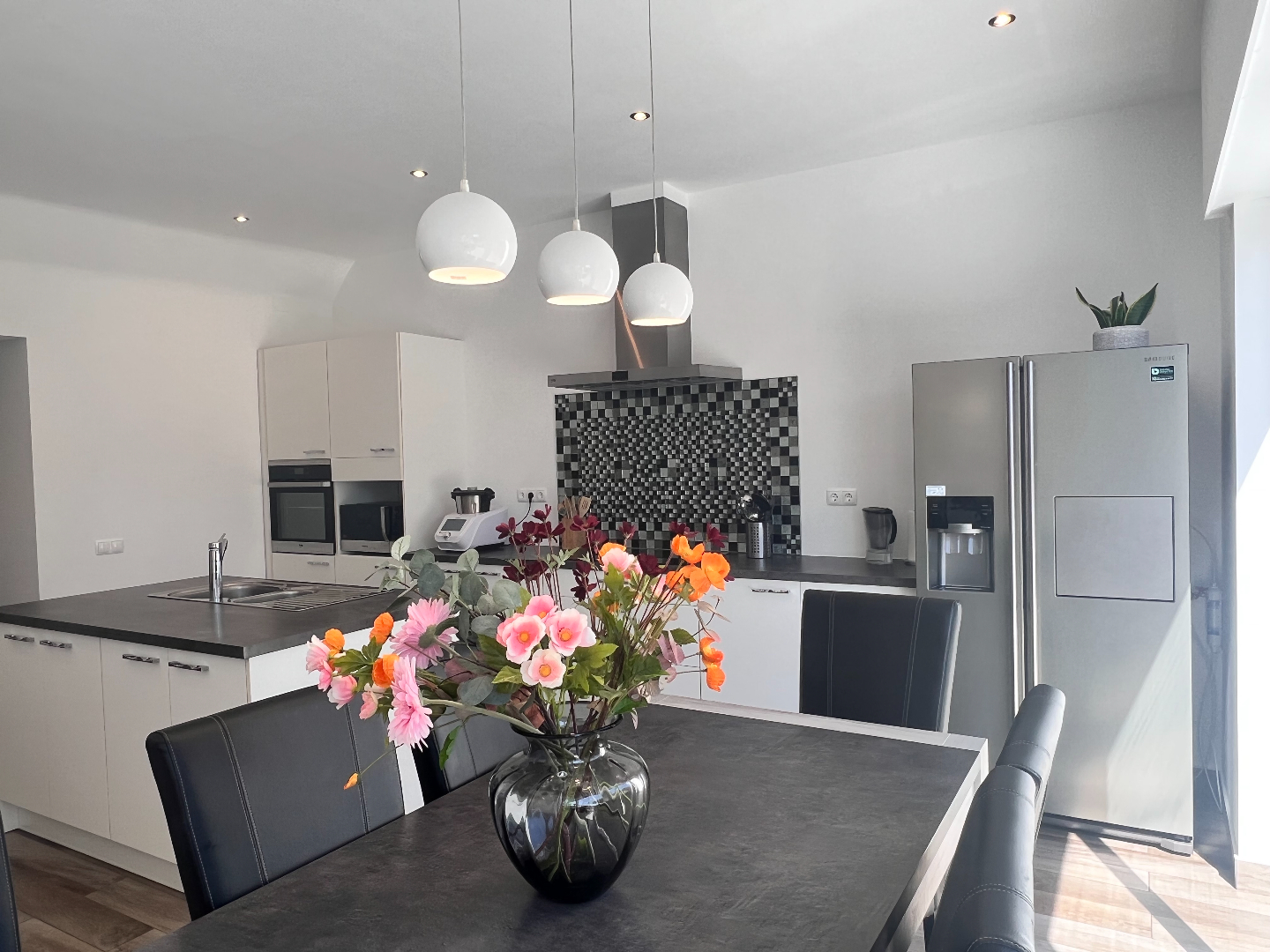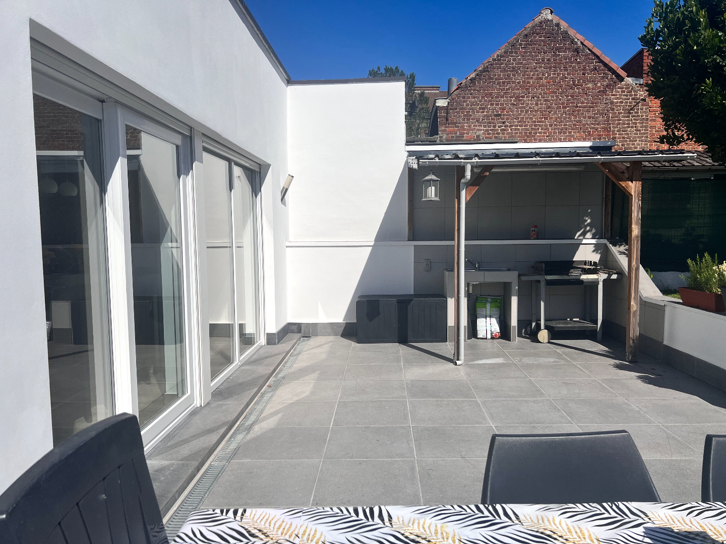 Deze woning heeft het allemaal: een strategische ligging voor vlot woon-werkverkeer, een zongerichte tuin én instapklaar. Je voelt hier de levendigheid van het centrum én je kan genieten van de residentiële rust. De grootste troeven zijn de grote ruimtes: binnenkomen doe je via de aparte inkomhal met vestiairekast onder de trap. Je stapt verder naar de mooie leefruimte met aanpalend de open keuken met eiland. De hele dag door valt het zonlicht binnen via de grote glasramen die over de volledige achtergevel zijn doorgetrokken. Schuif de grote glazen schuifdeur open en geniet van een ongeëvenaard binnen-buiten gevoel ’s. De buitenkeuken maakt het plaatje compleet, lekker aanschuiven voor de barbecue, zalig toch!