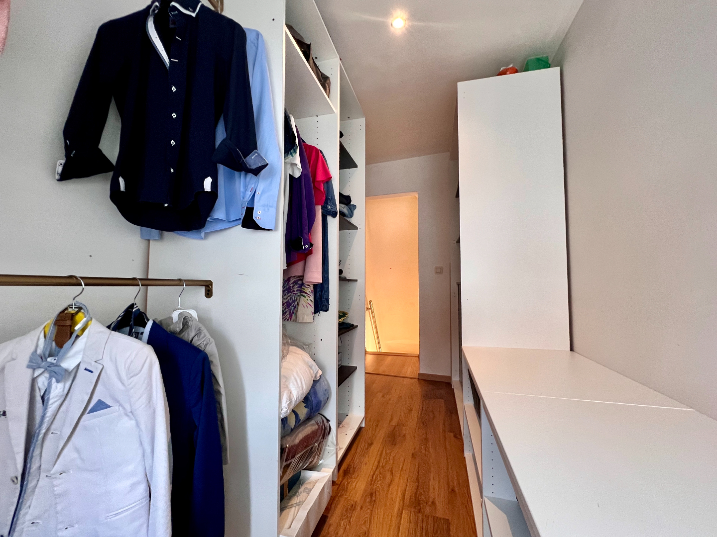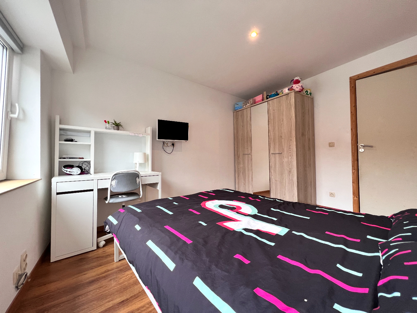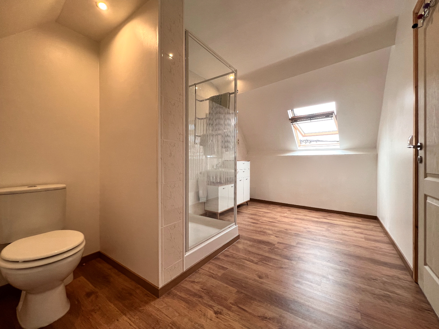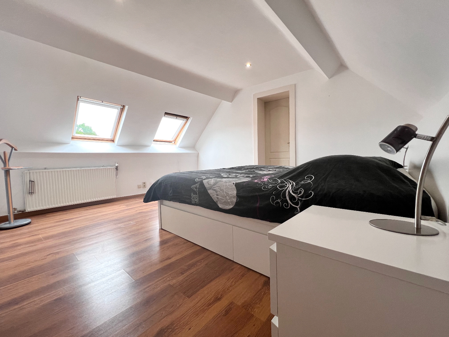Het tweede verdiep werd omgevormd tot een vierde masterbedroom met aansluitend de badkamer met toilet, douche en wasmeubel.