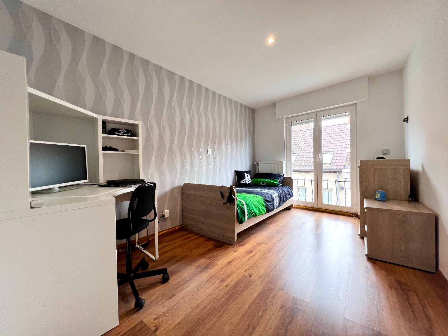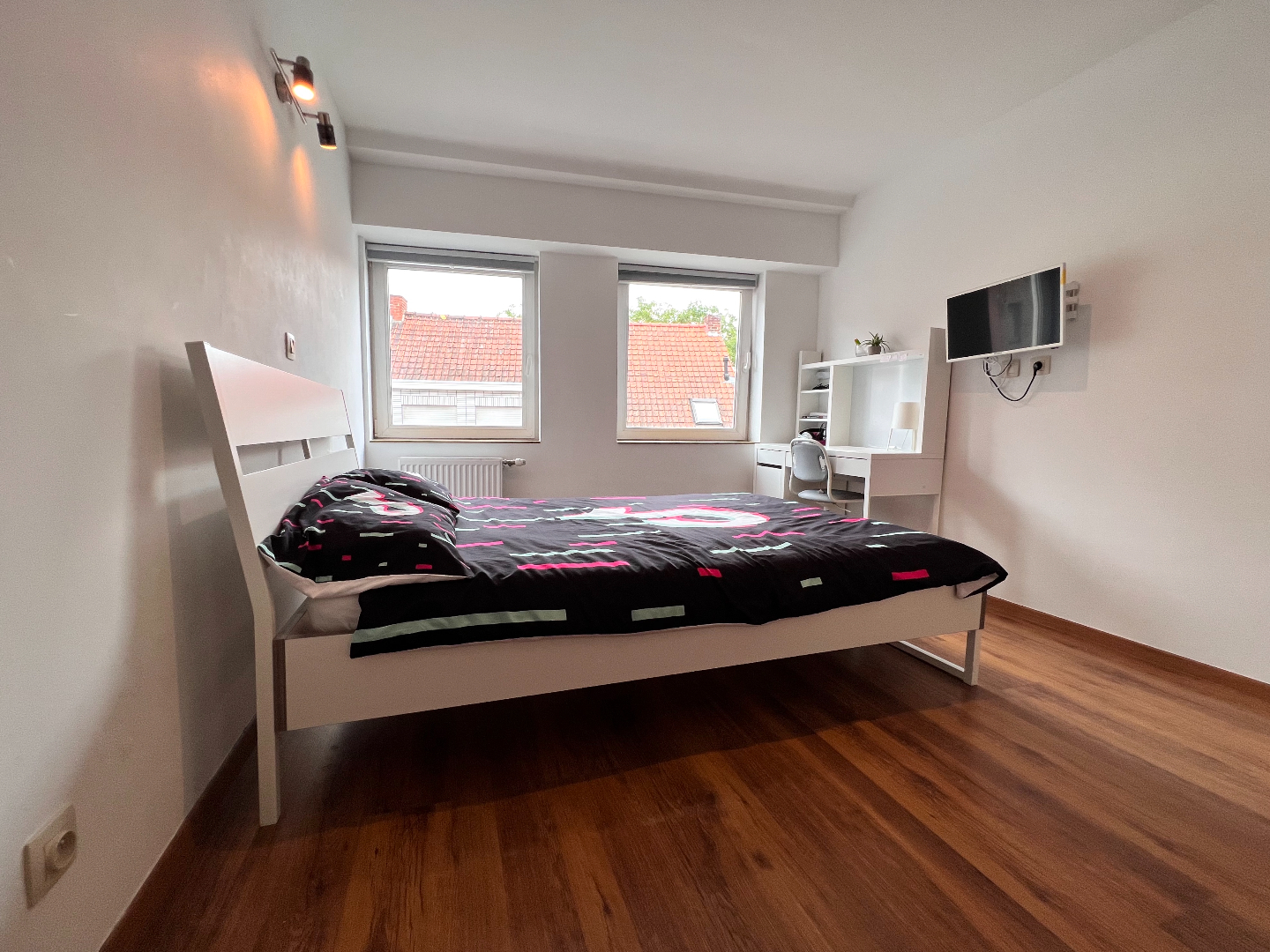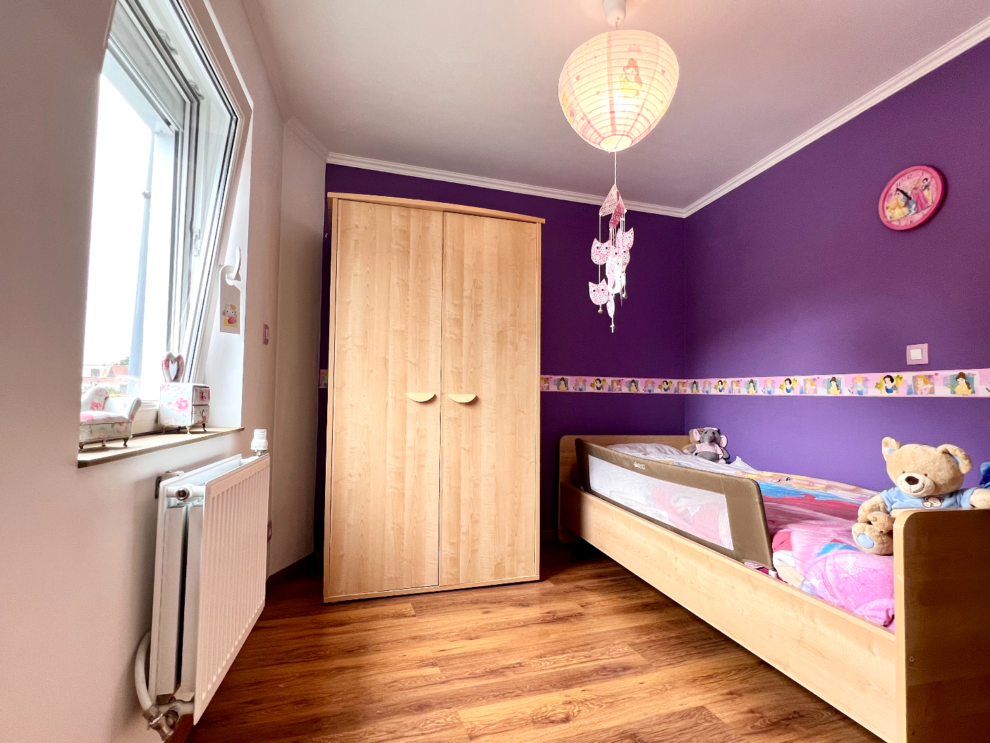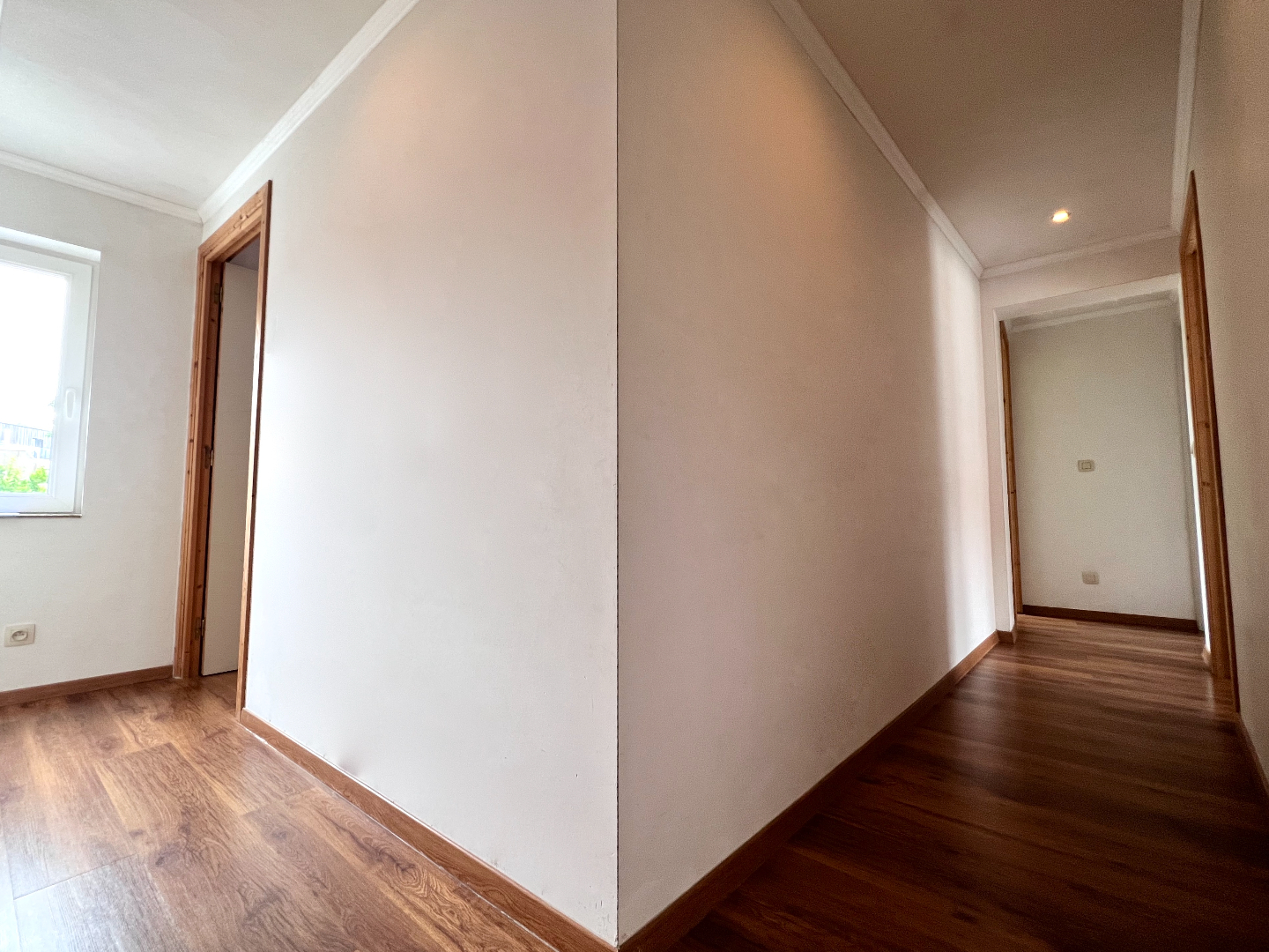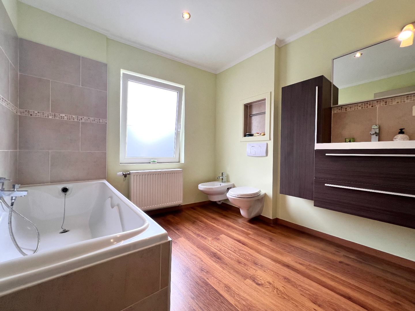 Het tweede verdiep werd omgevormd tot een vierde masterbedroom met aansluitend de badkamer met toilet, douche en wasmeubel.