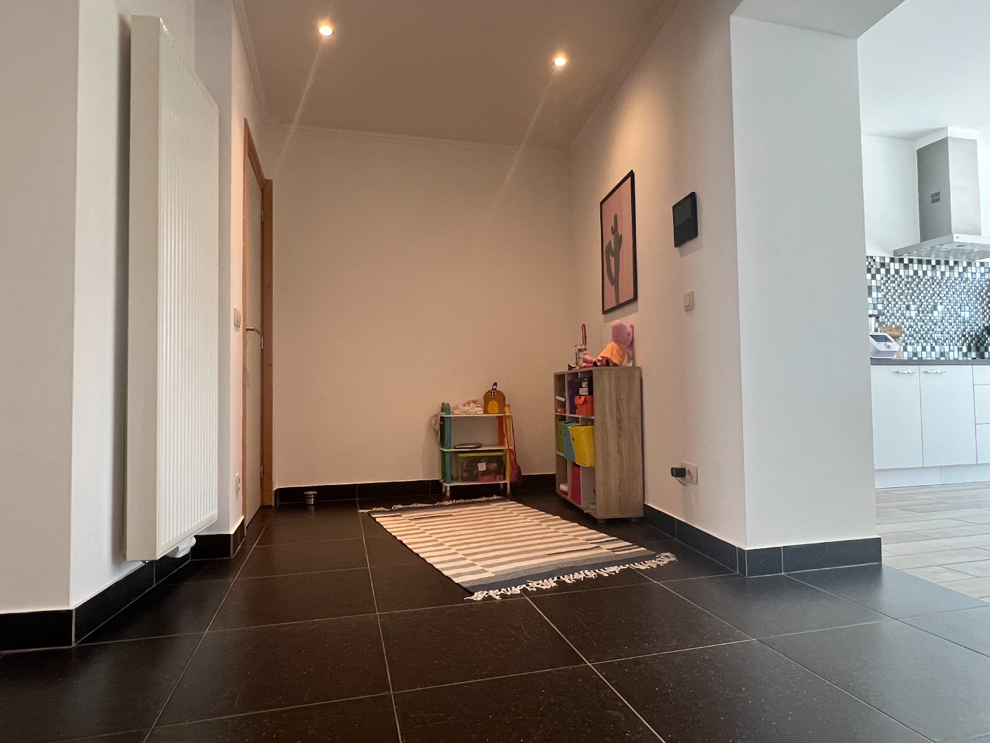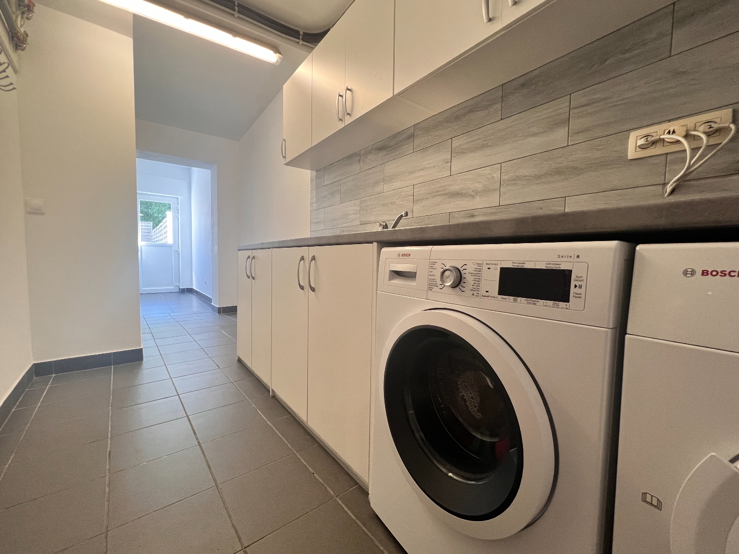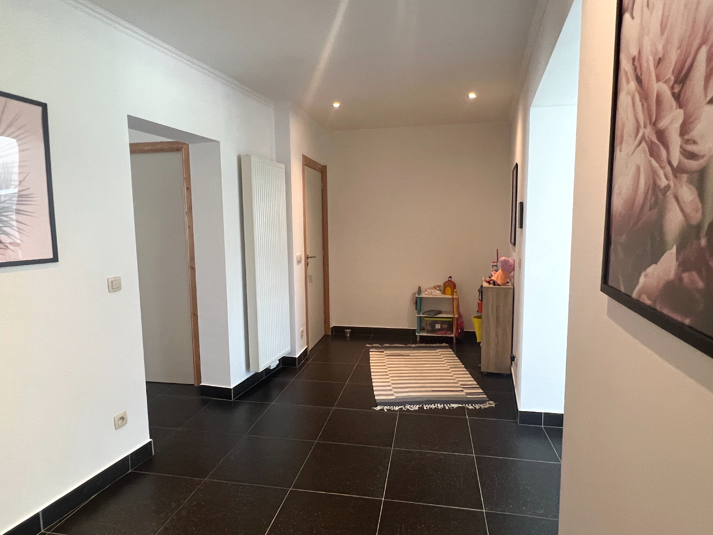 Verder beschikt de woning op het gelijkvloers over een grote was- en berging, een bureauruimte en een kleine handelsruimte met aparte ingang die momenteel door de kinderen als speelruimte is ingenomen. Ideaal voor een schoonheidsspecialiste, een kapster, een kinesist, boekhouder,...