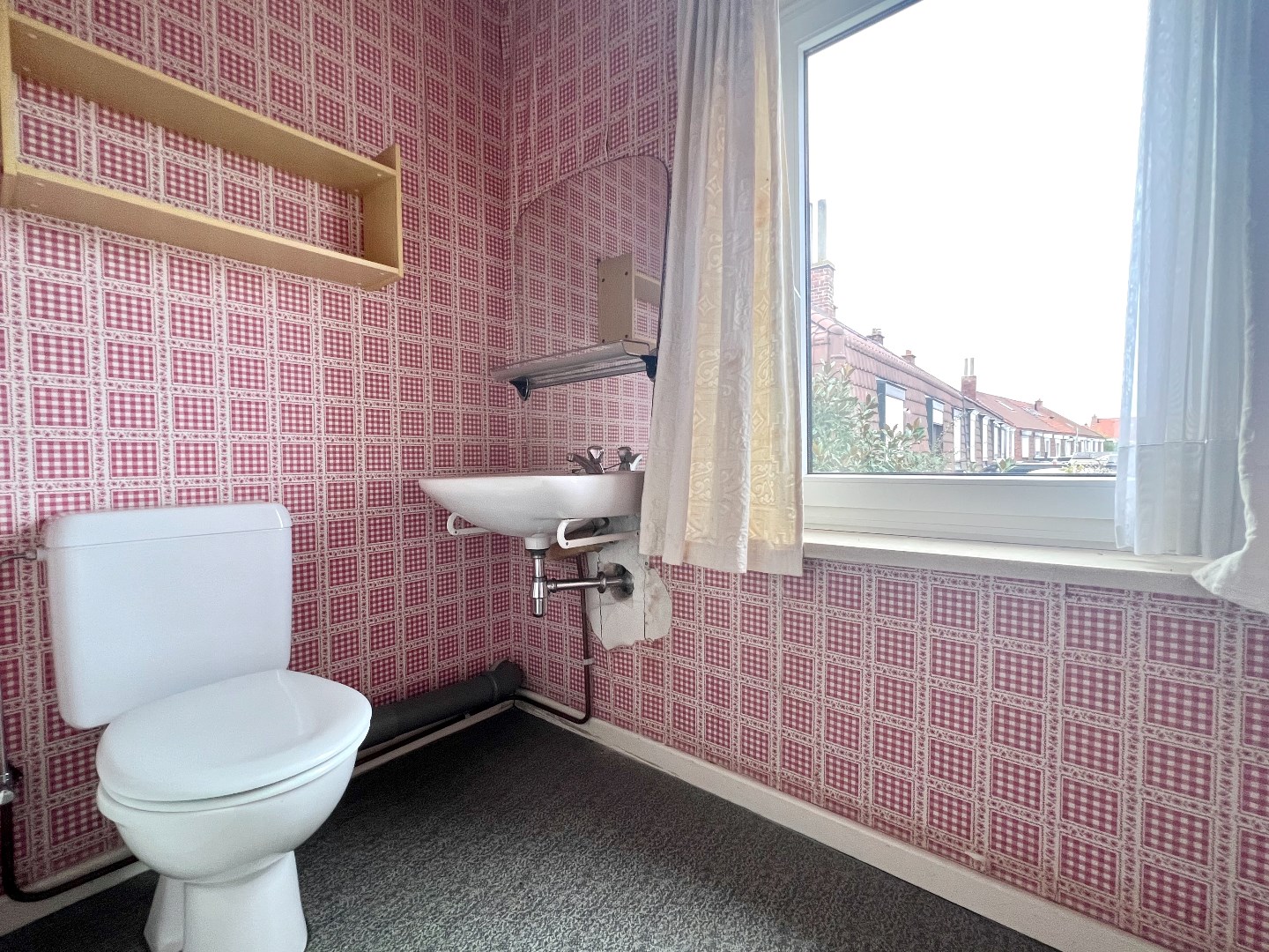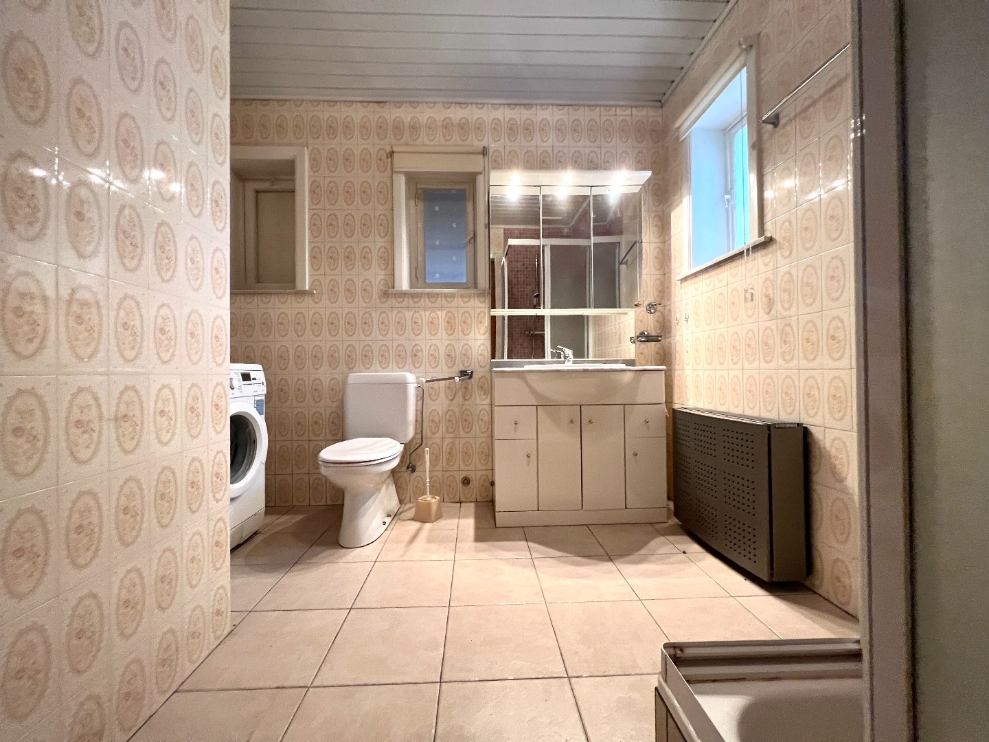 De woning is gelegen op een perceel van 440m2, met een mooie voortuin en een heerlijk breed stuk achtertuin. (mogelijkheid tot aansluiting garageweg achteraan). Verzorgde inkomhal met gastentoilet en toegang tot de kelder. De leefkeuken is achteraan gesitueerd met zicht op de tuin, de badkamer paalt er onmiddellijk aan. De leefruimte is vooraan gelegen met zicht op groen en de straatkant.