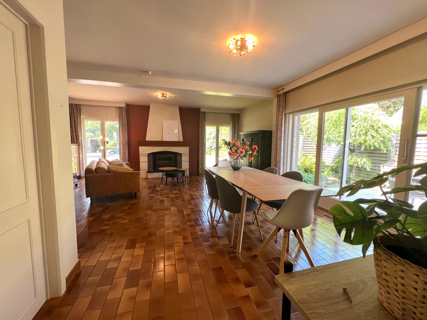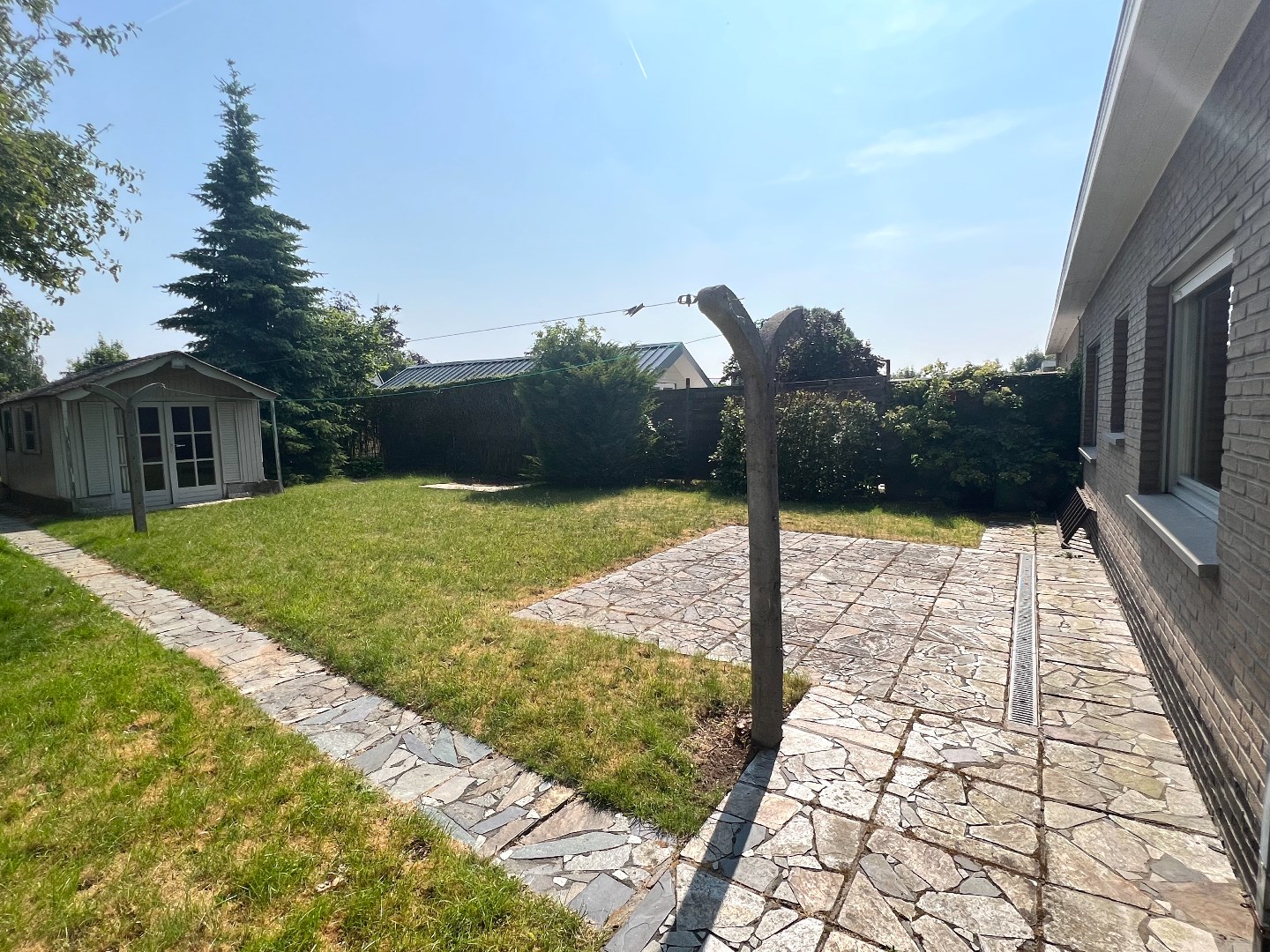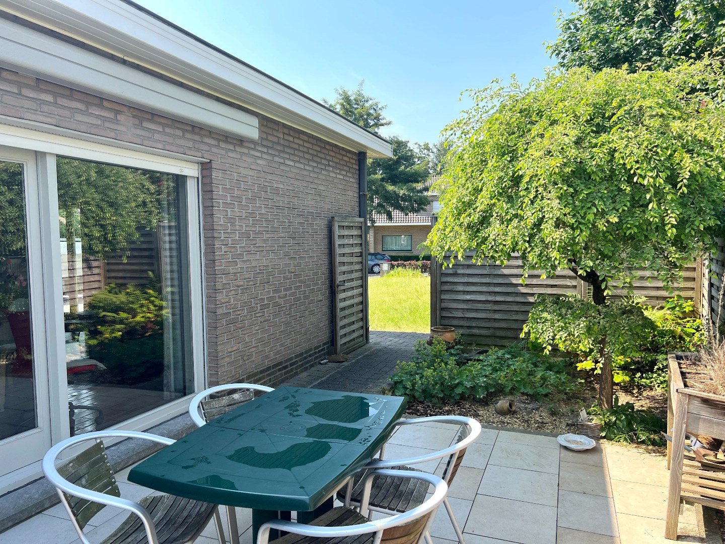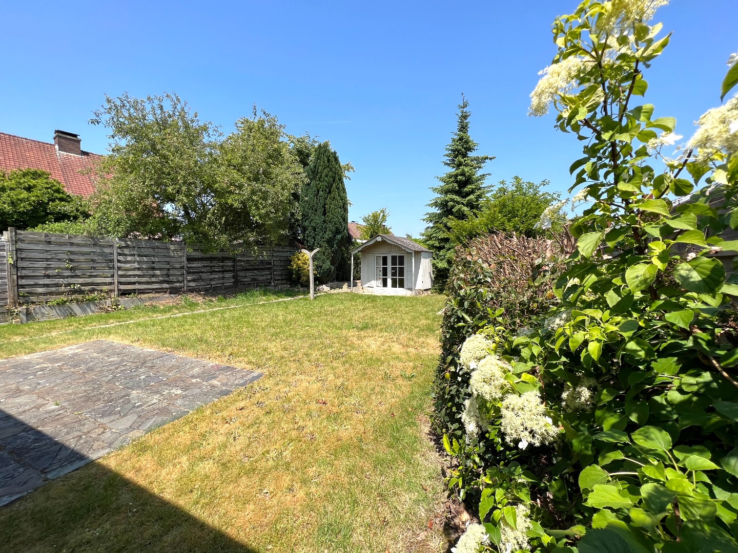 Het terras is een zalig plaatsje om aan tafel te schuiven, met de elektrische zonnewering tevens het favoriete plaatsje om te onbijten of te dineren. De tuin achteraan biedt volop plaats om de kinderen te laten ravotten en de propere was op een natuurlijke wijze te laten drogen.
