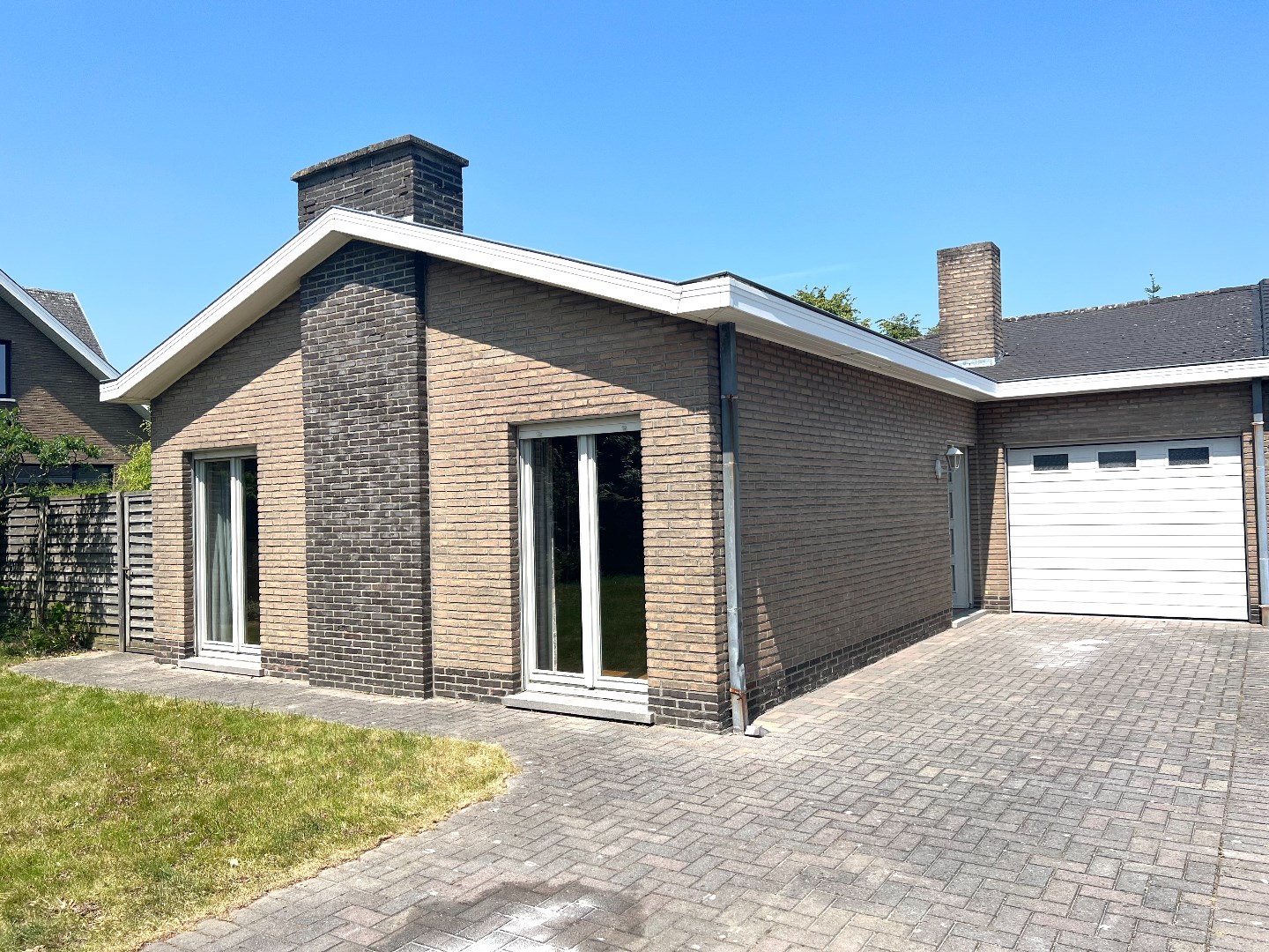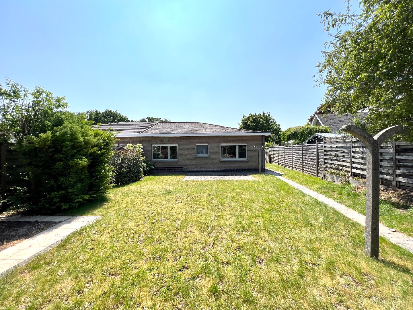 Deze gelijkvloerse woning met zowel grote tuin voor- als achteraan wordt te koop aangeboden.