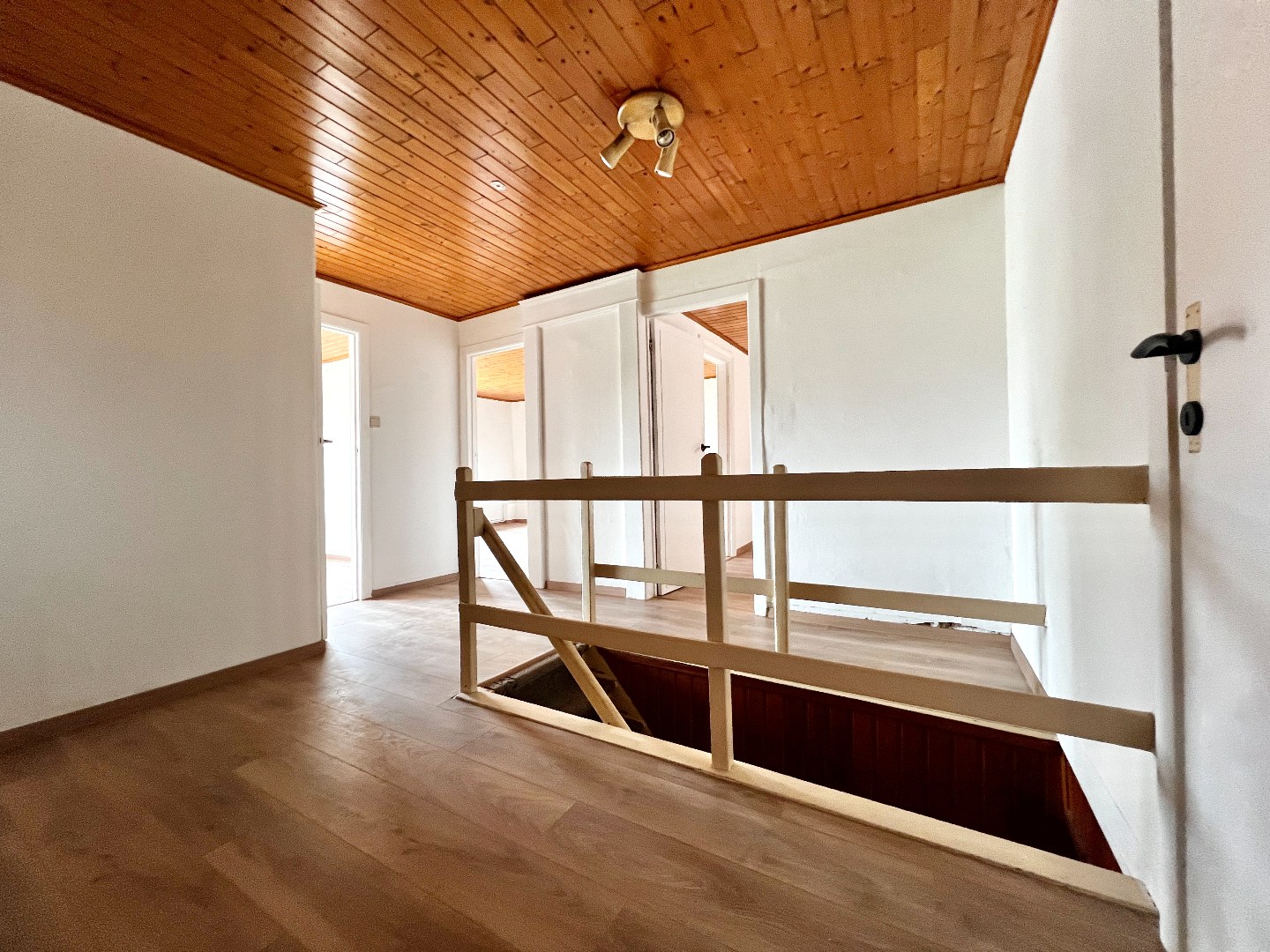 Op de verdieping zijn er drie ruime slaapkamers en een badkamer. Via de ruime hal kan je een vaste trap voorzien naar de hoge, geïsoleerde zolder, die perfect dienst kan doen als extra woonruimte, hobbykamer of bureau.