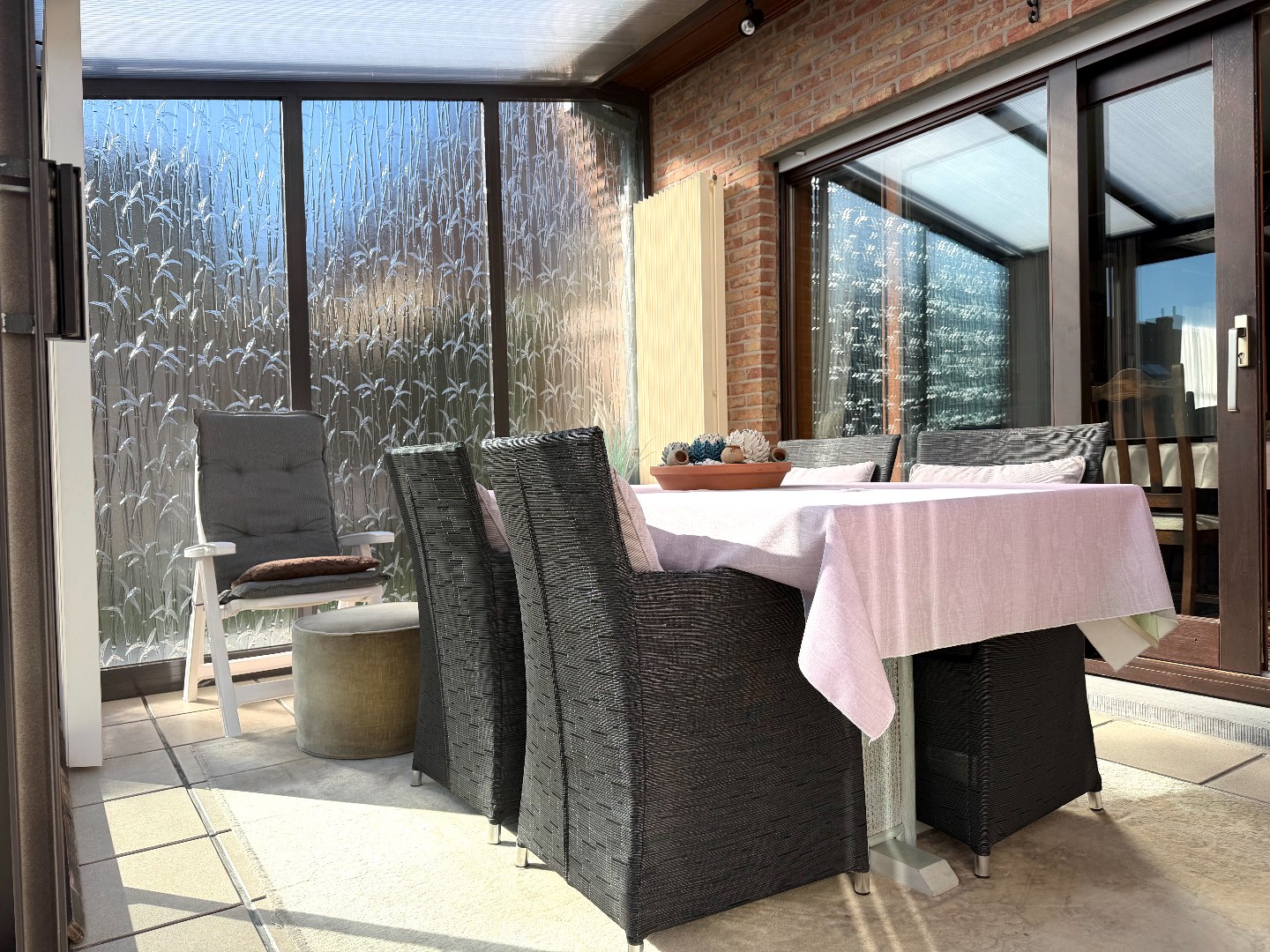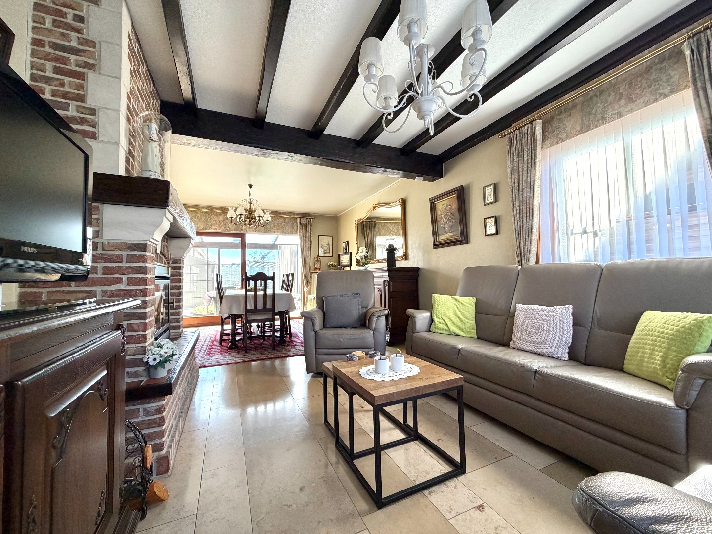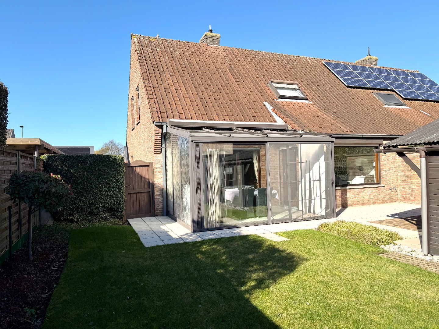 Deze instapklare woning verwelkomt u via een verzorgde inkomhal met gastentoilet. De lichtrijke leef- en eetruimte vormt het hart van de woning en biedt een warme, aangename sfeer. Aansluitend bevindt zich de veranda met verwarming, waar u het hele jaar door kan genieten van extra leefruimte en zicht op de tuin.