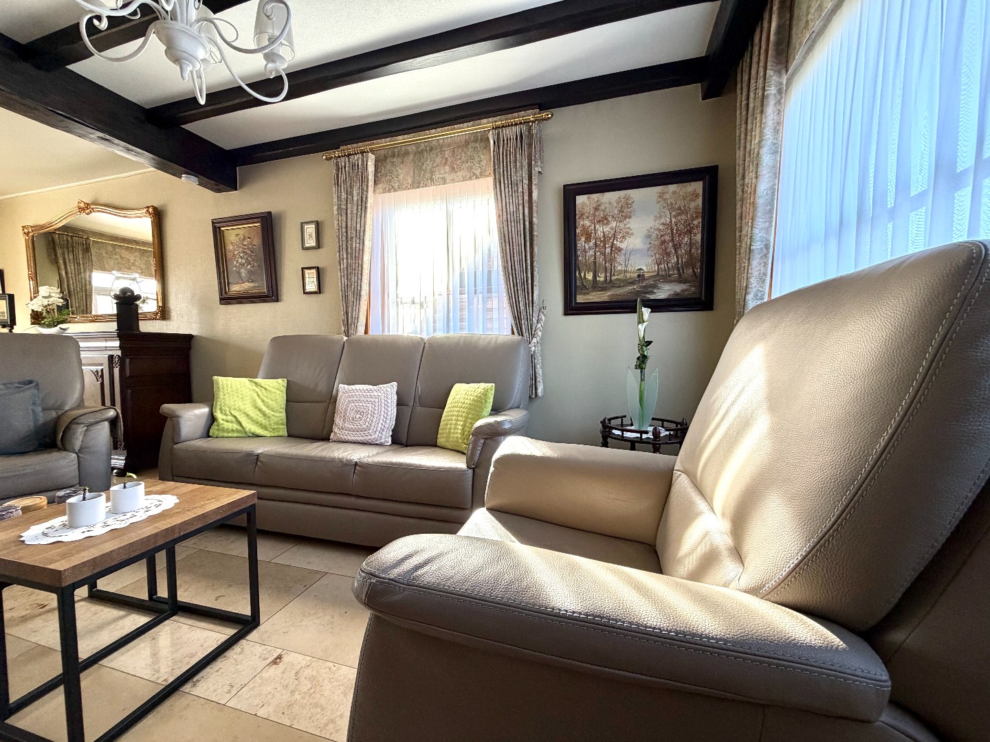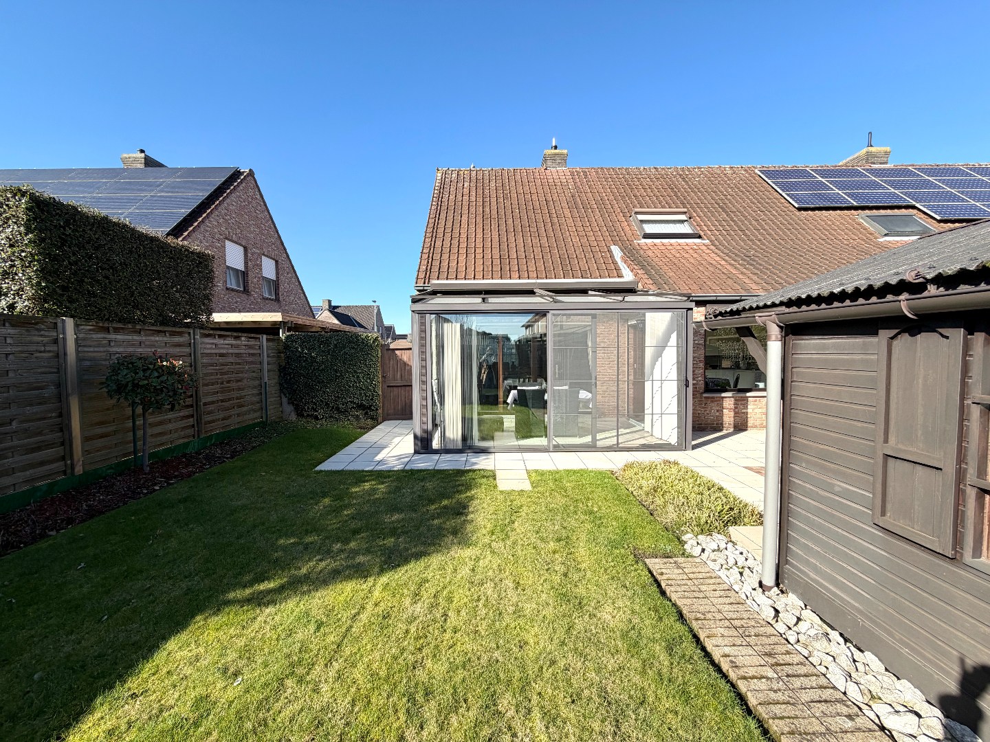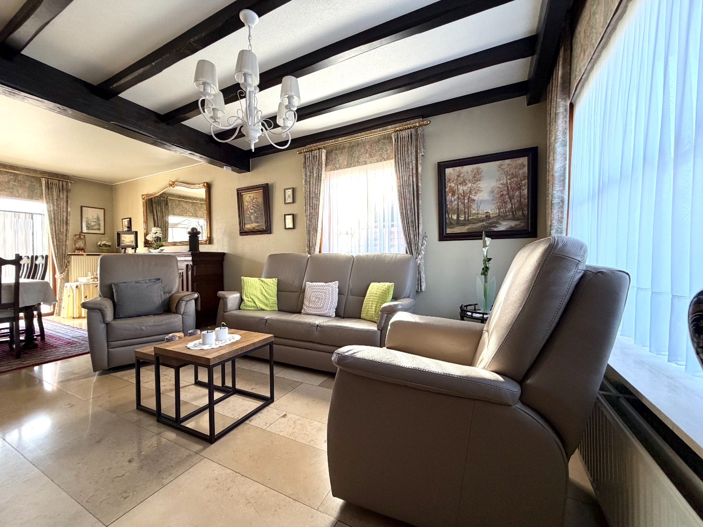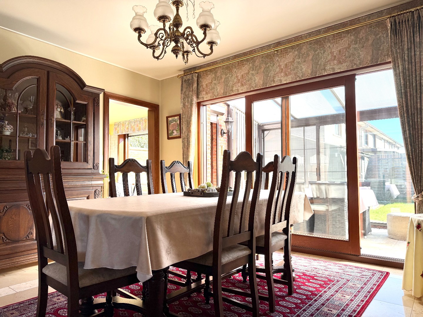 Deze instapklare woning verwelkomt u via een verzorgde inkomhal met gastentoilet. De lichtrijke leef- en eetruimte vormt het hart van de woning en biedt een warme, aangename sfeer. Aansluitend bevindt zich de veranda met verwarming, waar u het hele jaar door kan genieten van extra leefruimte en zicht op de tuin.