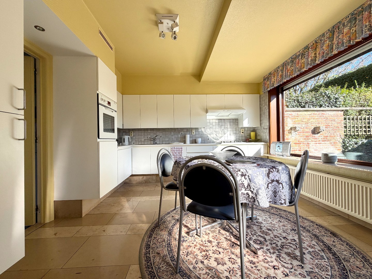 De ruime keuken beschikt over voldoende kastruimte en een gezellige eetplaats – ideaal voor dagelijkse maaltijden en gezellige familiemomenten.