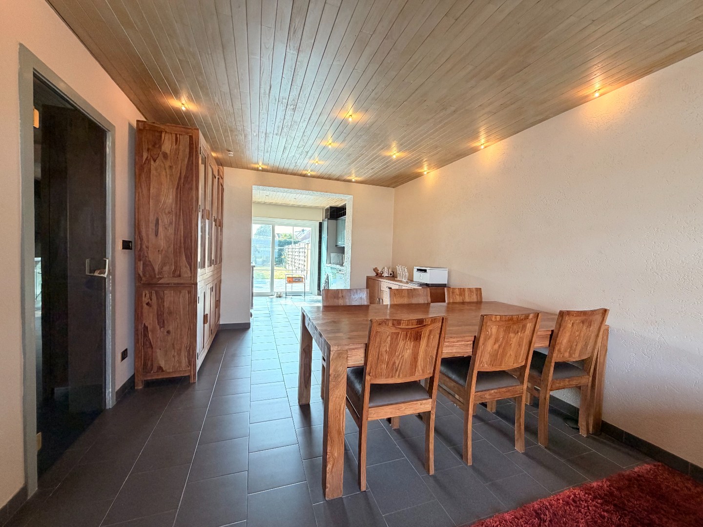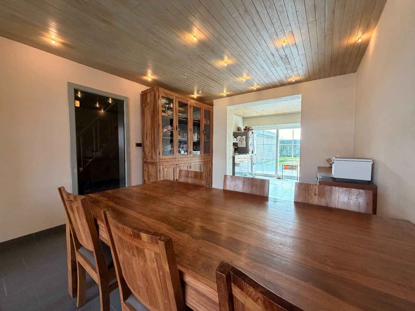 Buiten geniet je van een oprit met plaats voor drie wagens, een ruime garage voor twee wagens achter elkaar, een terras en een aangename tuin. Zonnepanelen en regenwater (2 x 2000L) aanwezig.(kraan garage en oprit op aangesloten). Pvc-ramen.