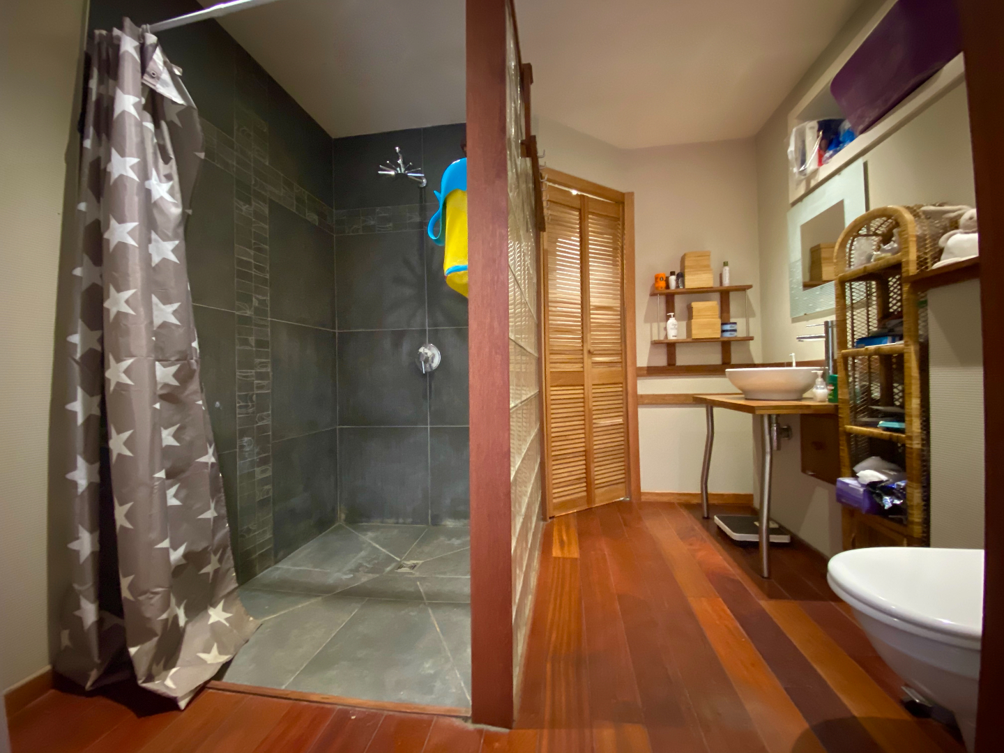 Buiten tref je een heel ruime berging aan, een terras en een heerlijke tuin om de kinderen te ravotten. Bovendien kan je met de fiets of te voet langs een weggetje zo de tuin binnenwandelen. De muren werden geïnjecteerd en geïsoleerd, alsook het dak.