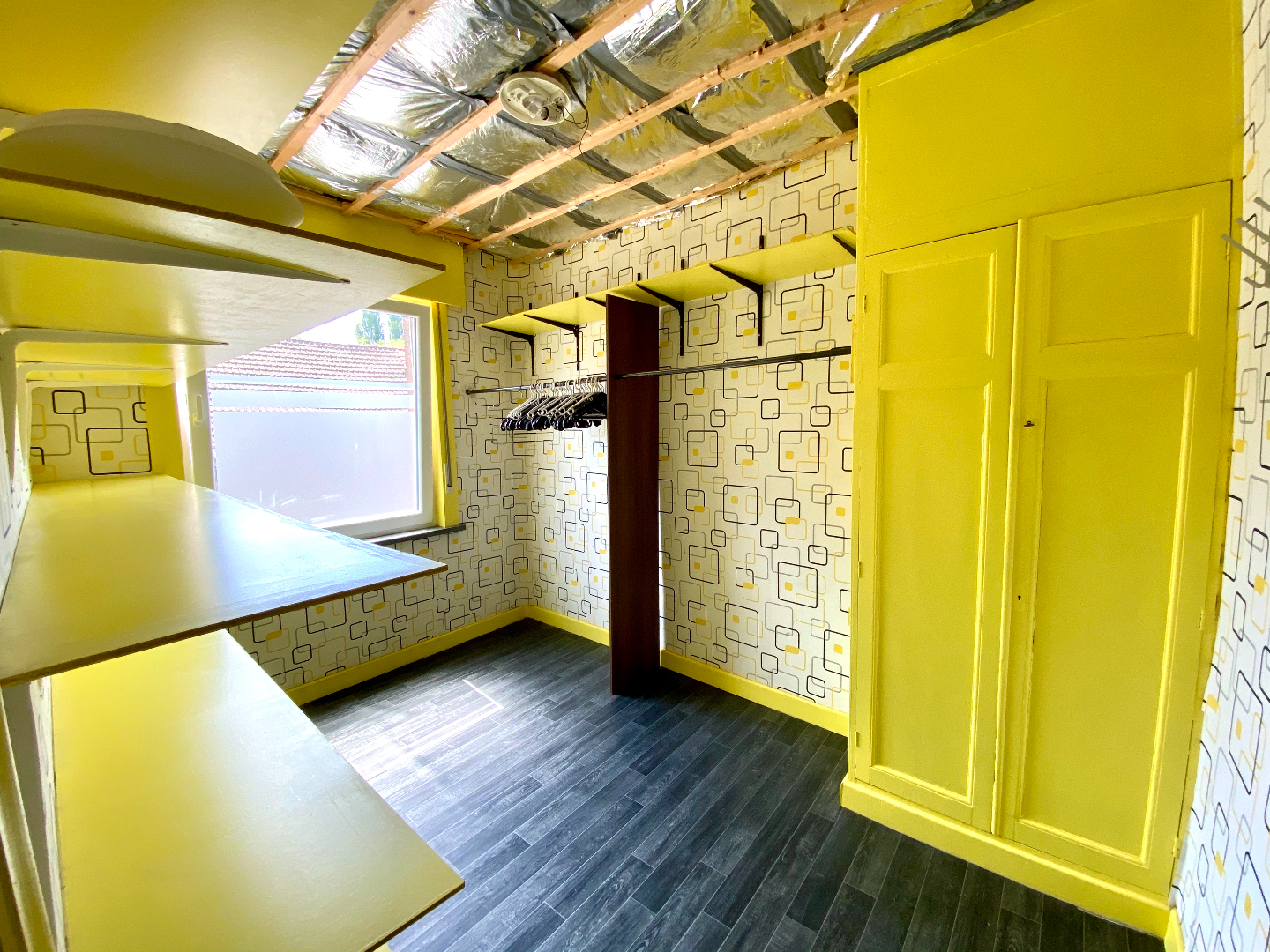 Bepaalde ruimtes dienen nog te worden afgewerkt met gyproc-platen en uitgepakt, daarna kan het schilderen in de gewenste kleur beginnen.