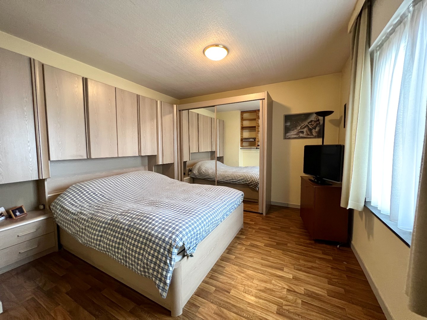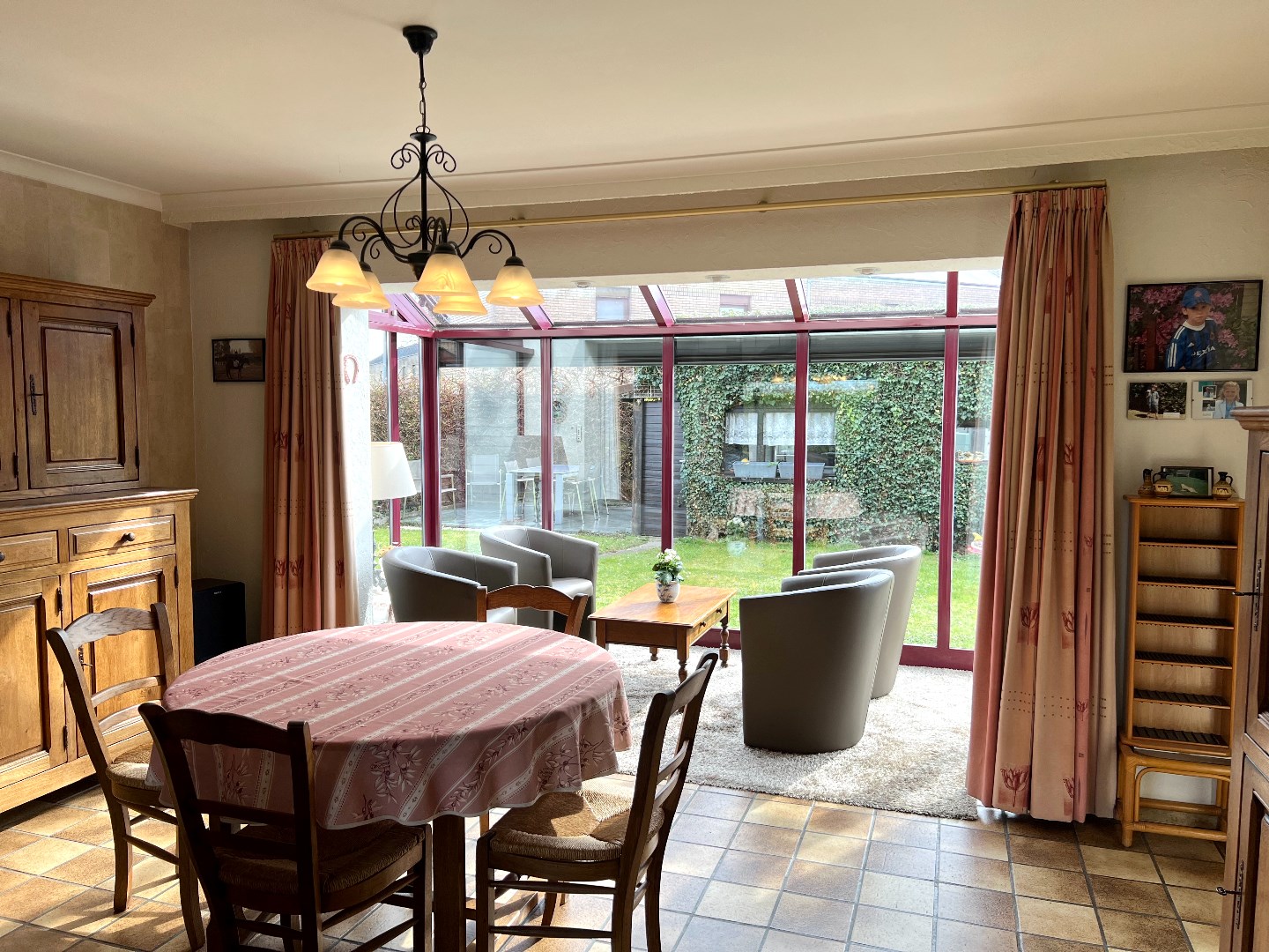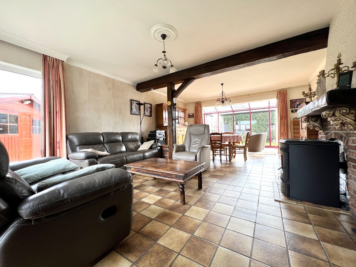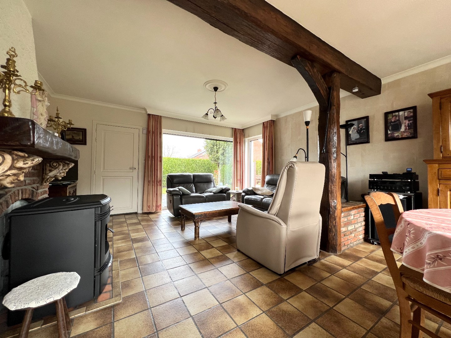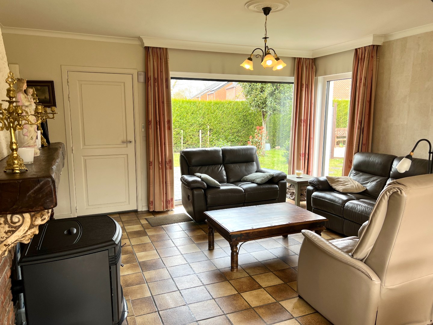 De grote leef-en eetruimte heeft zowel ramen op de voor-, zij als achterkant waardoor er maximaal licht binnenvalt. De erker is een gezellig hoekje waar nu en dan eens een kaartje wordt gelegd.