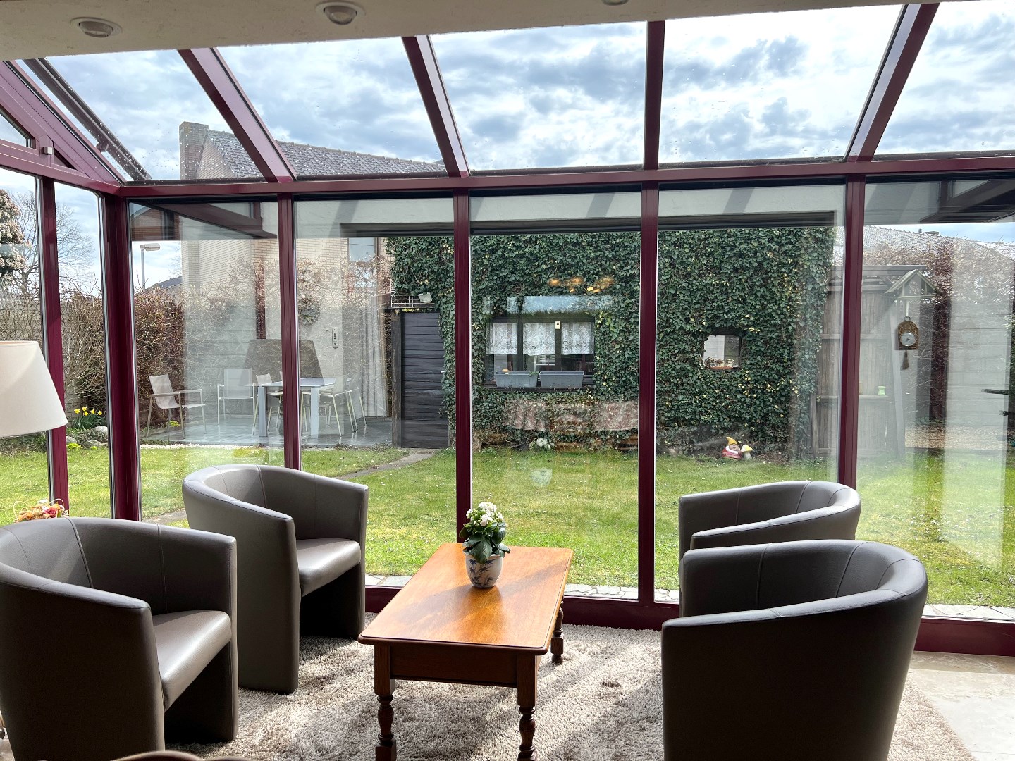 De spouwmuren werden geïsoleerd, er ligt vloerisolatie op de zoldervloer. Overal pvc-ramen met hoogrendementsbeglazing. Rolluiken en zonnewering op de erker aanwezig. Tevens een regenput waar het toilet, de wasmachine en buitenkraan op aangesloten zijn. Twee tuinhuizen en de tuin kan worden bereikt met een zijdelingse poort (handig voor een trekwagen).