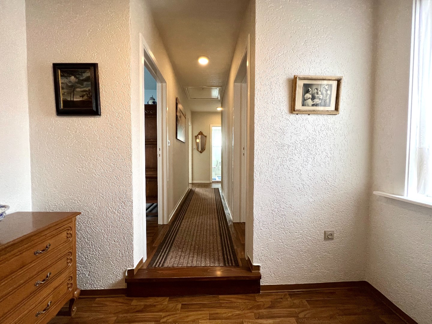 Binnenkomen in de inkomhal, apart toilet, berging en trappenhal.