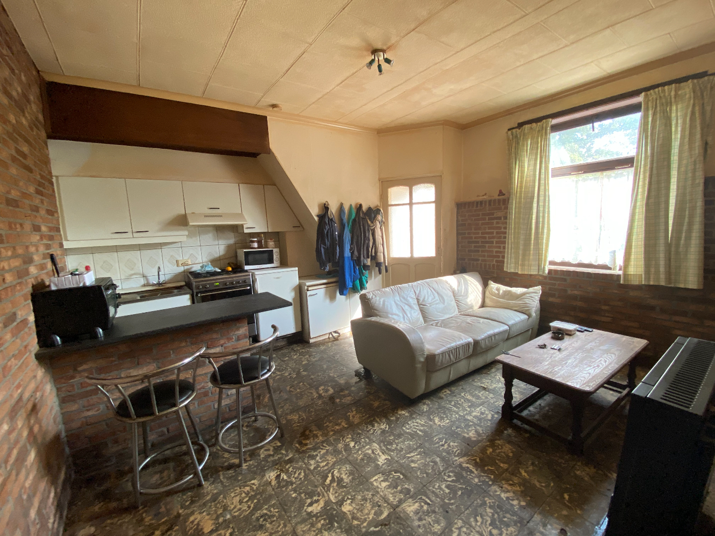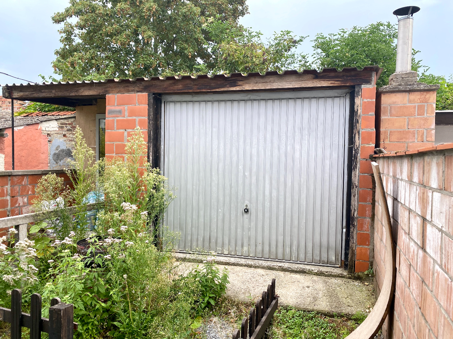 Voor het beluikje nog een grote garage waar elektriciteit en een op te frissen terrasje.