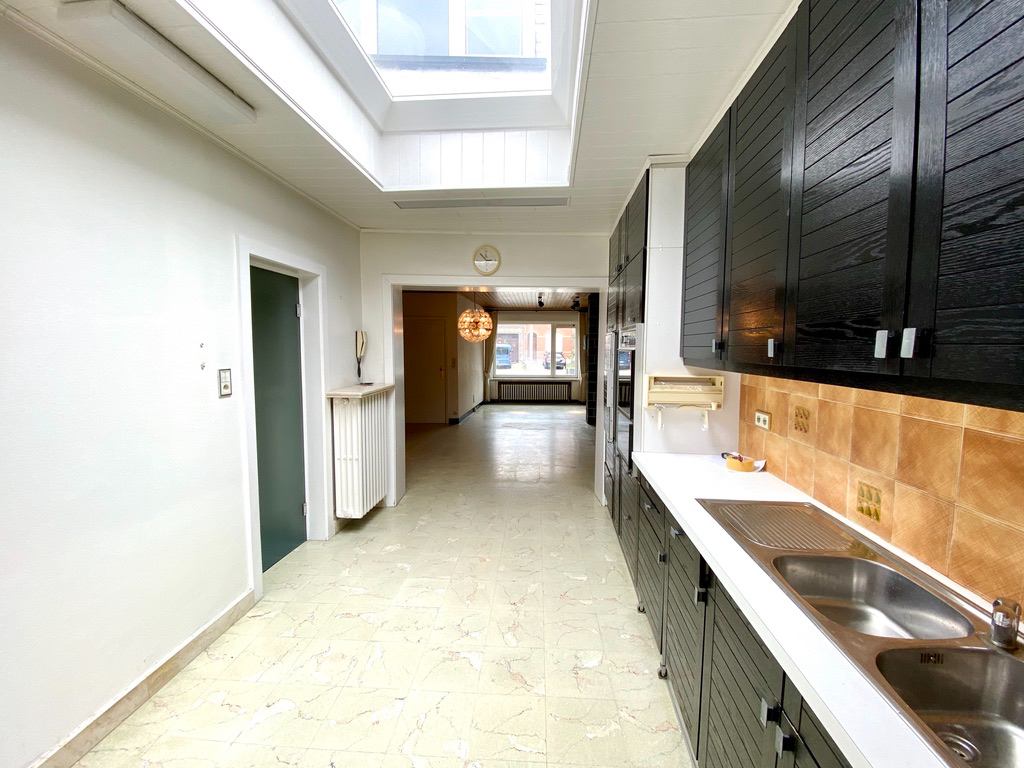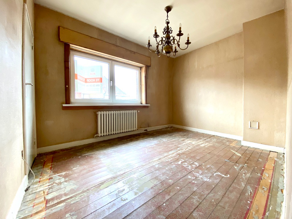 Te renoveren rijwoning te koop met tuin en oprit voor de wagen, op boogscheut van station, centrum en op- en afritten autostrade.