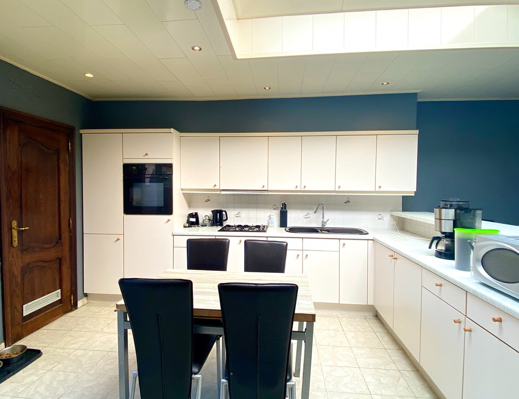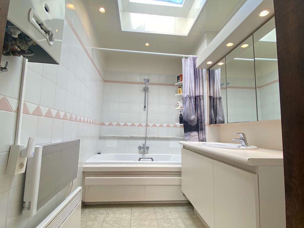 Binnenkomen in de inkomhal met links het toilet en de was- en berging. De leefruimte is één groot geheel, met eetgedeelte en halfopen keuken. Gelijkvloerse badkamer met ligbad en wastafel. Op het eerste en tweede verdiep twee ruime slaapkamers. De zolder is geïsoleerd, ramen met dubbele beglazing. Stadstuintje met terras. Droge kelder aanwezig.