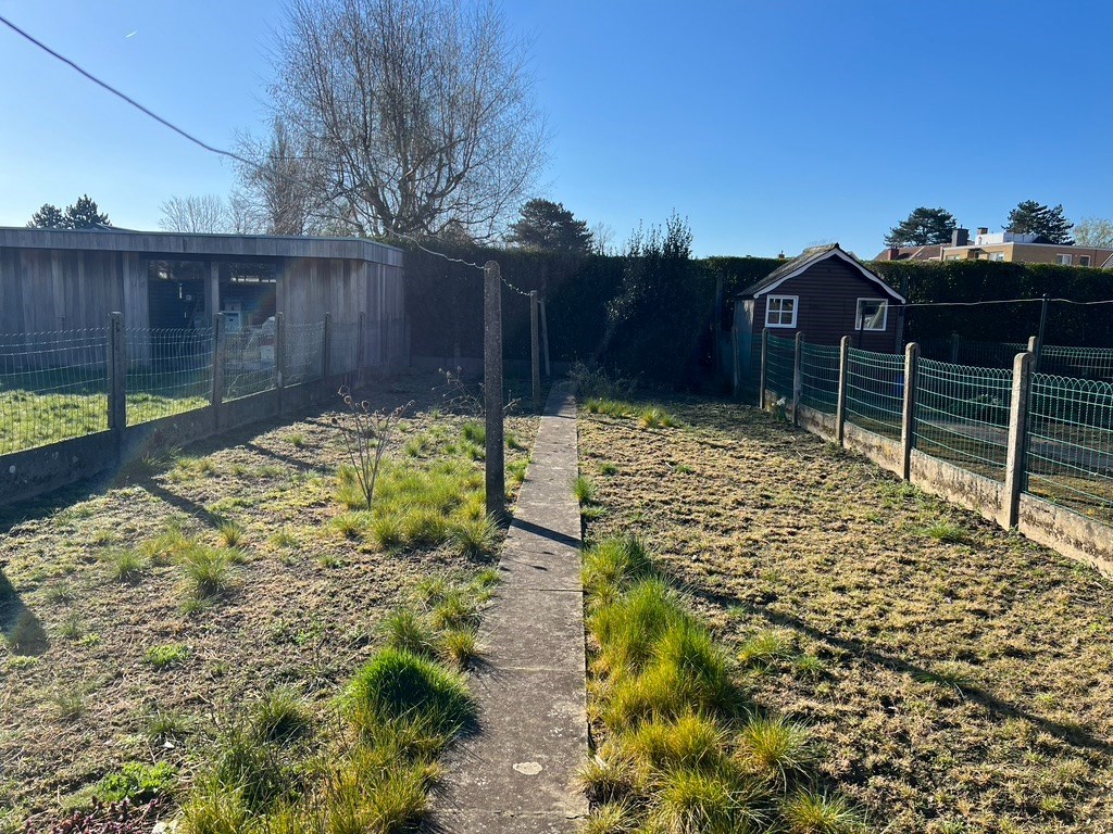 De garage met elektrische poort is ideaal voor het stallen van de auto en fietsen en heeft toegang tot de tuin. Achter het tuinhuis ligt nog een mooi stukje moestuin.