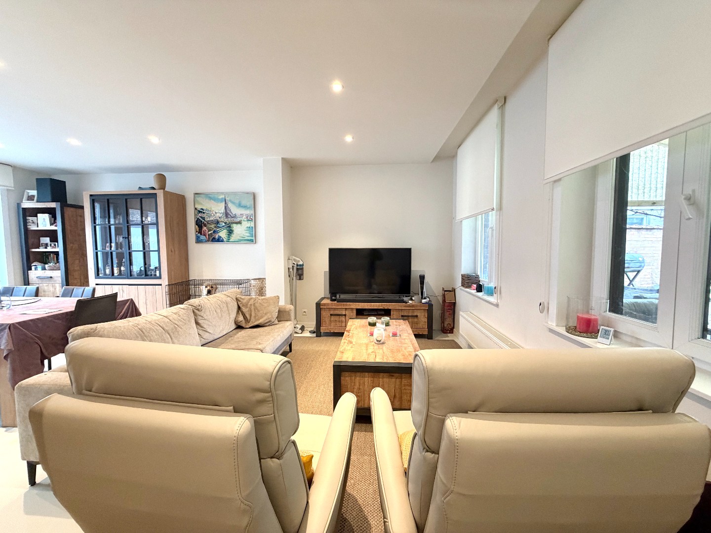 Inkomhal, gezellige leefruimte & keuken met eetplaats (gietvloer)